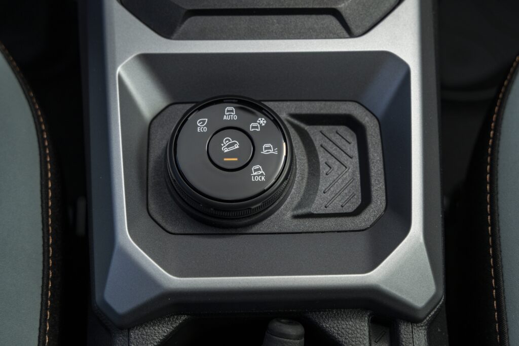 Mașina are cinci moduri de rulare: Eco, Auto, Snow, Mud/Sand și Lock, plus funcția Hill Descent Control.