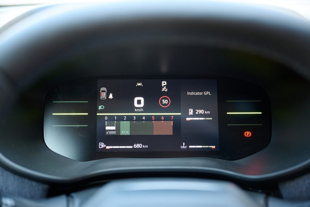 Într-un regim mixt care a inclus localități și drumuri naționale am obținut 4,9 litri în cazul rulării pe benzină și 6,1 pentru rularea pe GPL. În cazul rulării pe autostradă, consumul a fost de 5,9 litri la rularea pe benzină și 8,3 când am comutat pe GPL. Dacă ar fi să fac o medie și să mă refer la un consum mediu, atunci situația arată așa: 5,5 litri/100 km la rularea cu benzină și 7,1 l/100 km la rularea pe GPL. În aceste condiții, pot vorbi despre o autonomie care poate ajunge la 1.600 km, asta pentru că mașina are un rezervor de benzină de 50 litri și unul de GPL de 49 litri.