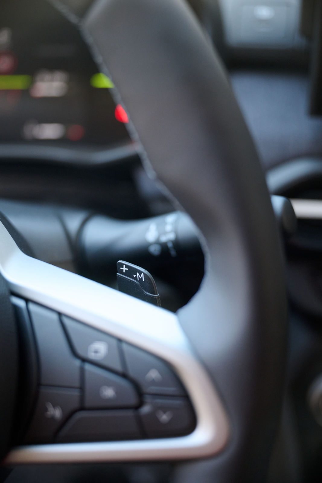 În cazul în care ai un traseu care îți solicită un răspuns mai prompt la comenzi din partea ansamblului motor-cutie, poți selecta modul manual și poți menține treapta dorită. Schimbarea manuală a treptelor se face prin intermediul padelelor amplasate pe volan (poziționarea acestora fam găsit-o ergonomică). Vei putea apela la modul manual și când vrei să pregătești o depășire.