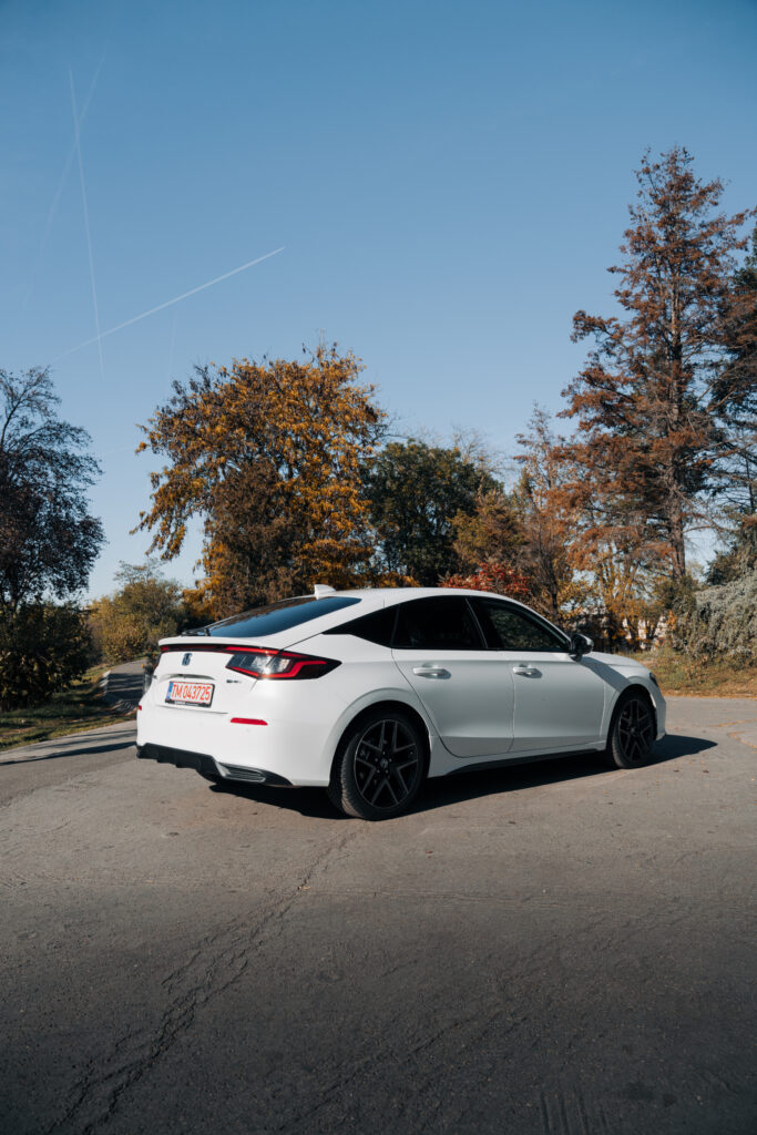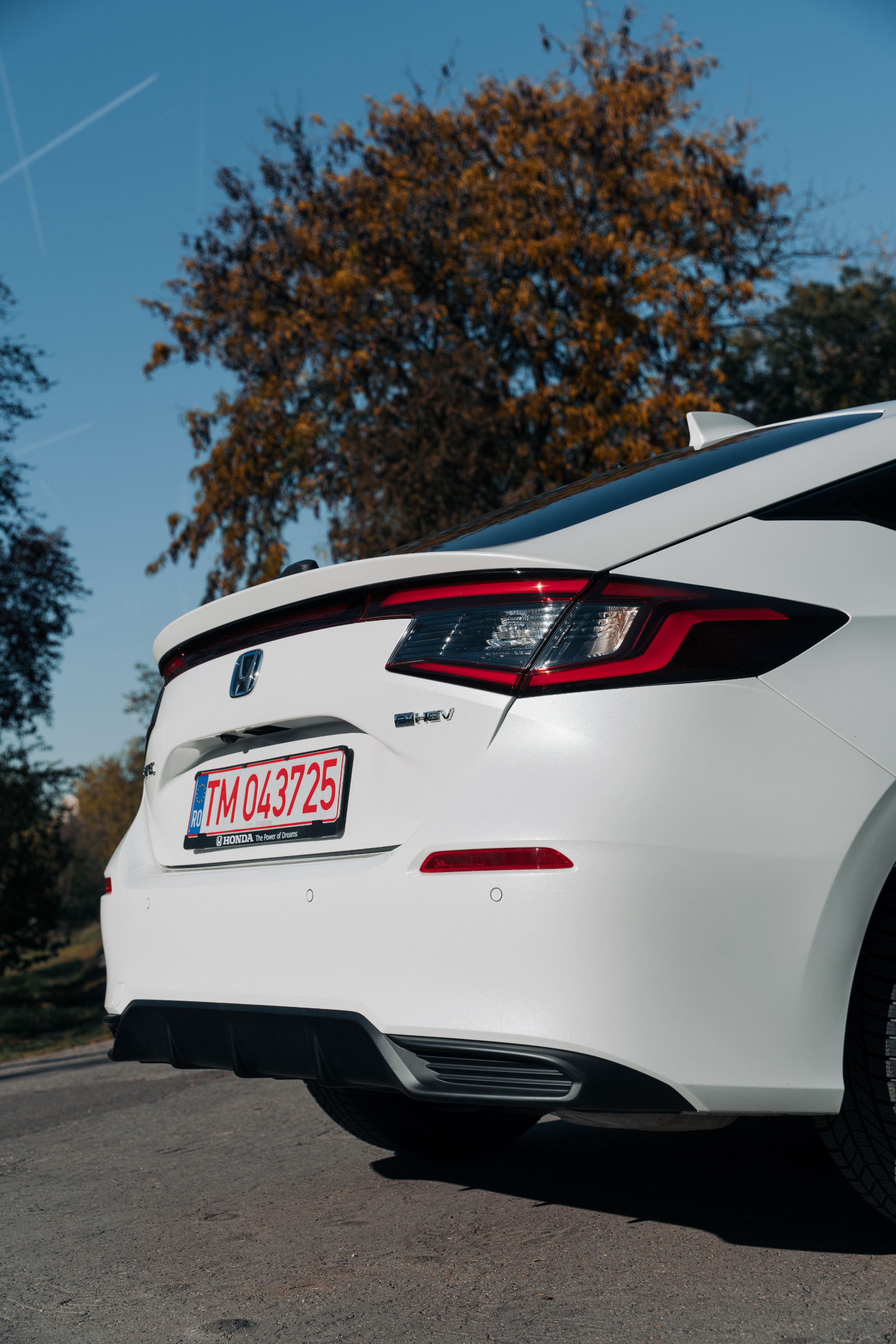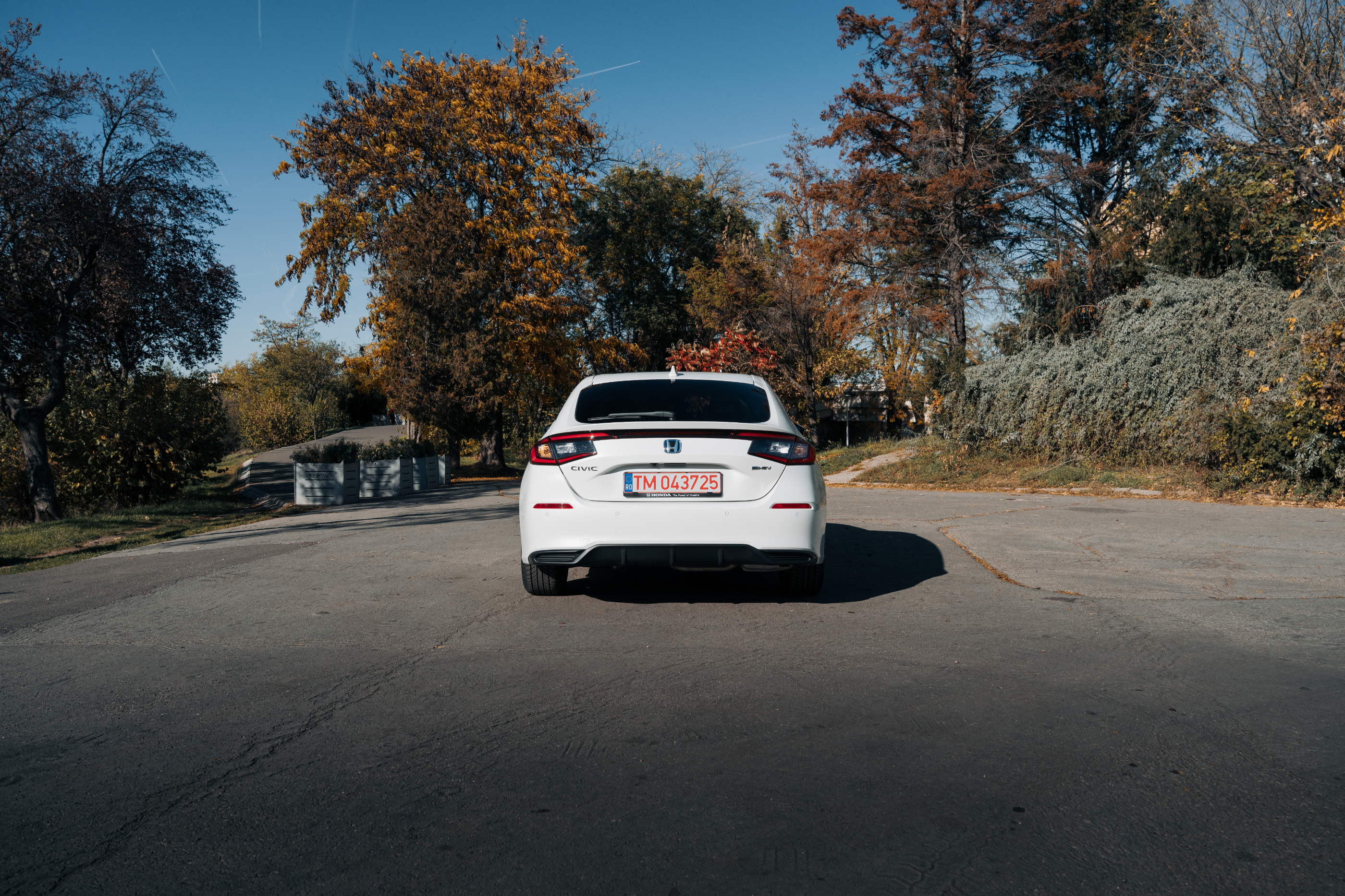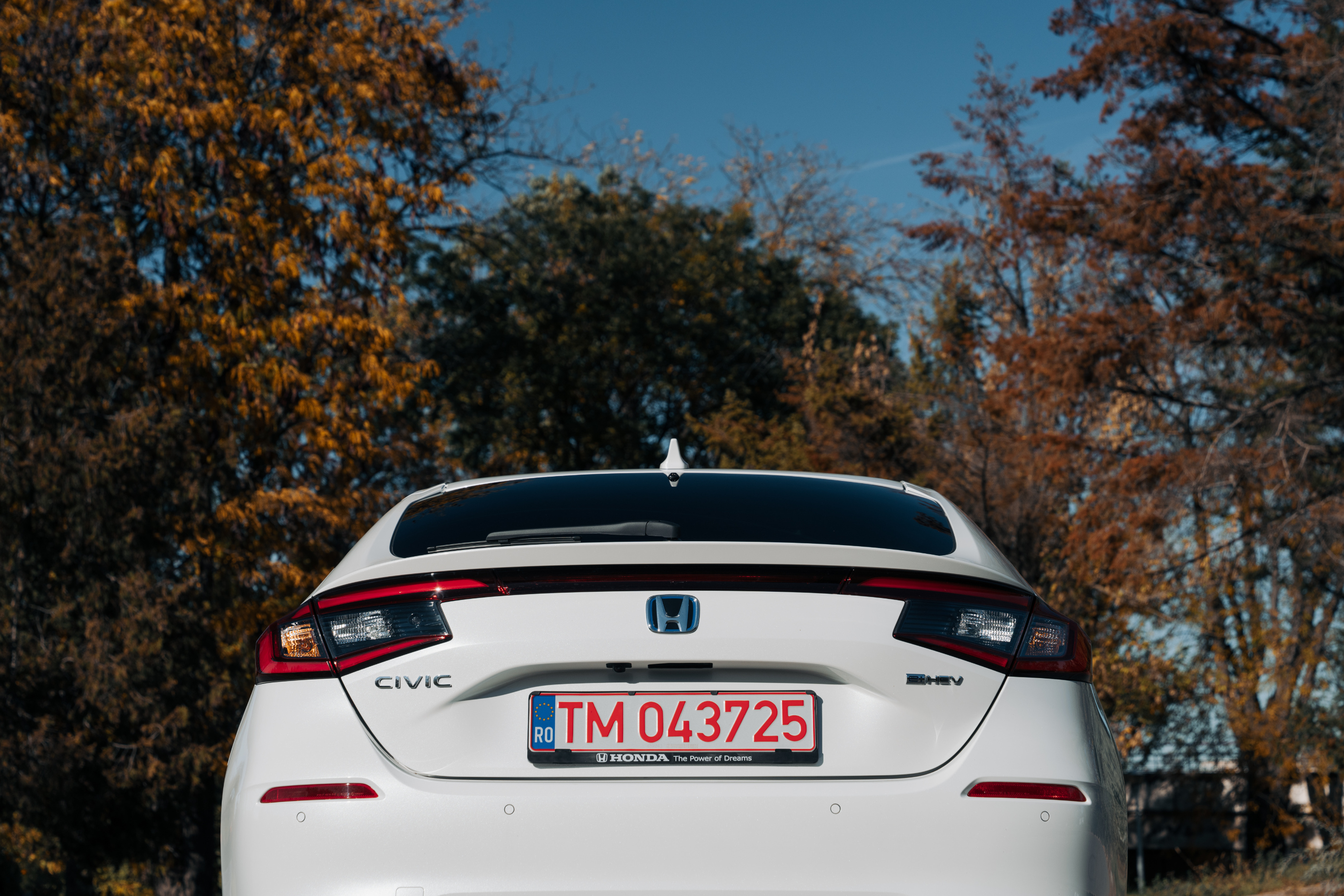 În testul nostru aș putea spune că am trecut de la o extremă la alta rapid, apoi am înțeles că, de fapt, Civic este o medie aproape de perfecțiune. Au fost momente în care aș fi dorit mai multe resurse, pentru că șasiul permite și pentru că am tatuată pe minte imaginea aceea sportivă Honda; atunci chiar aș fi vrut mai mult. Apoi, destul de rapid, simțeam că motorizarea complexă e arhisuficientă pentru nevoile de zi cu zi. Și că-ți oferă cu generozitate reprize peste ceea ce-ți permite traficul actual. Așa că, dacă punem totul cap la cap realizăm că alegerea este cât se poate de logică. Și e și mai evident de ce inginerii japonezi au mizat pe această soluție. Mi se pare interesant cum deși vei rula electric, funcționarea motorului termic, a cărui misiune va fi să furnizeze energia necesară deplasării propriu-zise (generator), îi va confuza pe mulți. Altfel, dacă nu vrei să-ți încarci mintea cu detalii demne de o comunitate de pasionați veritabili și ești genul care să mulțumește să alimenteze (cu benzină) și să se bucure, de voie, de nevoie, de mașină, Civic e deopotrivă simplu și eficient.