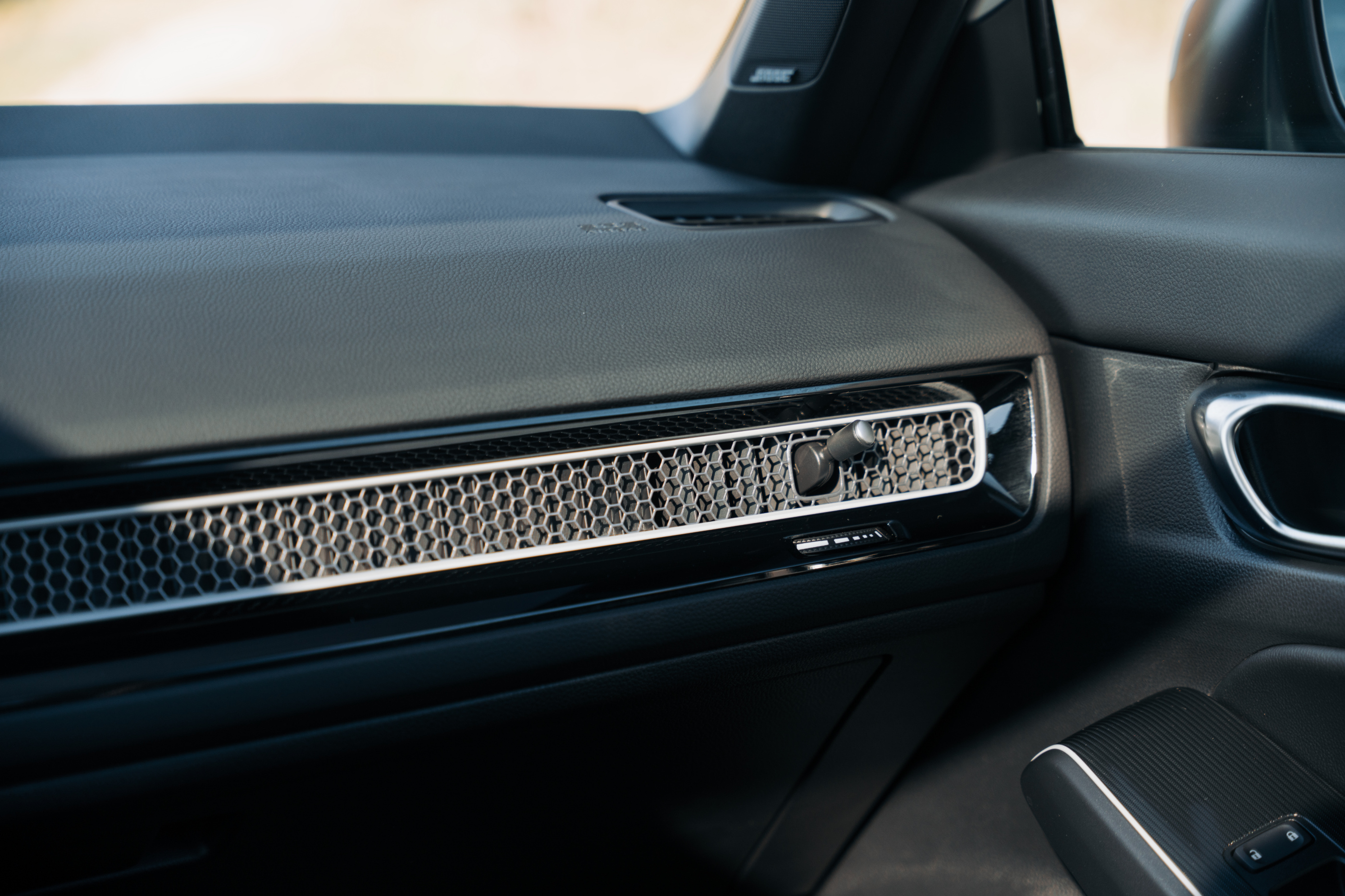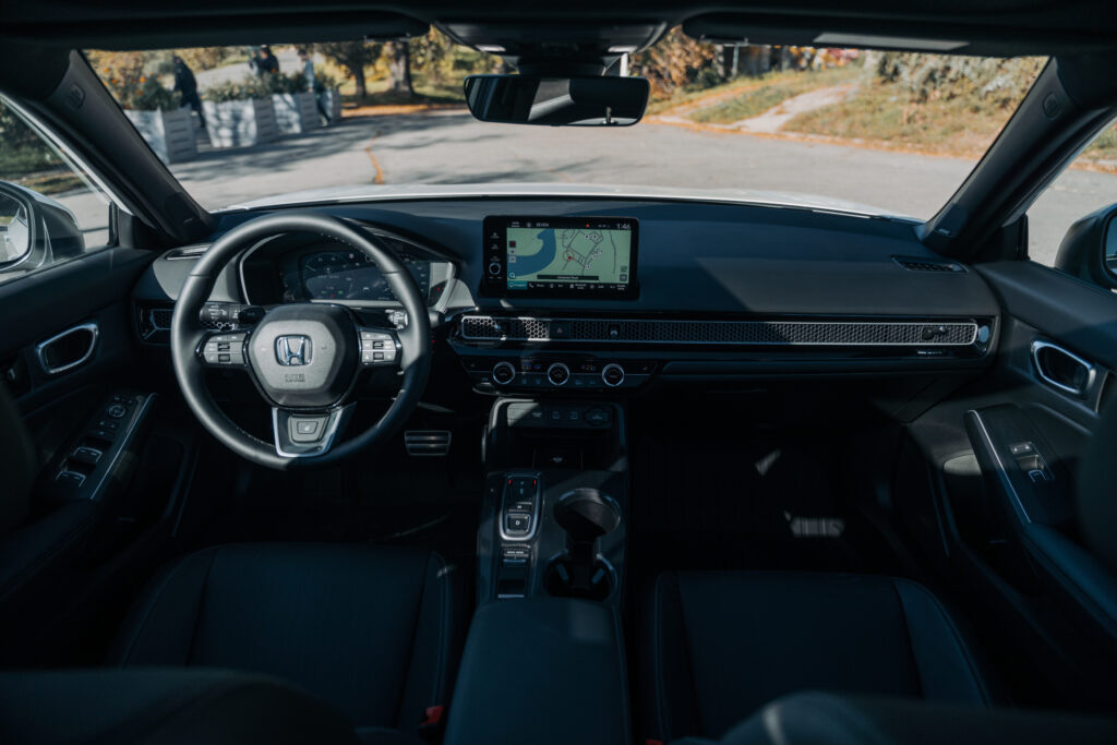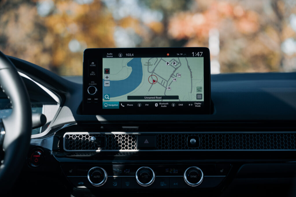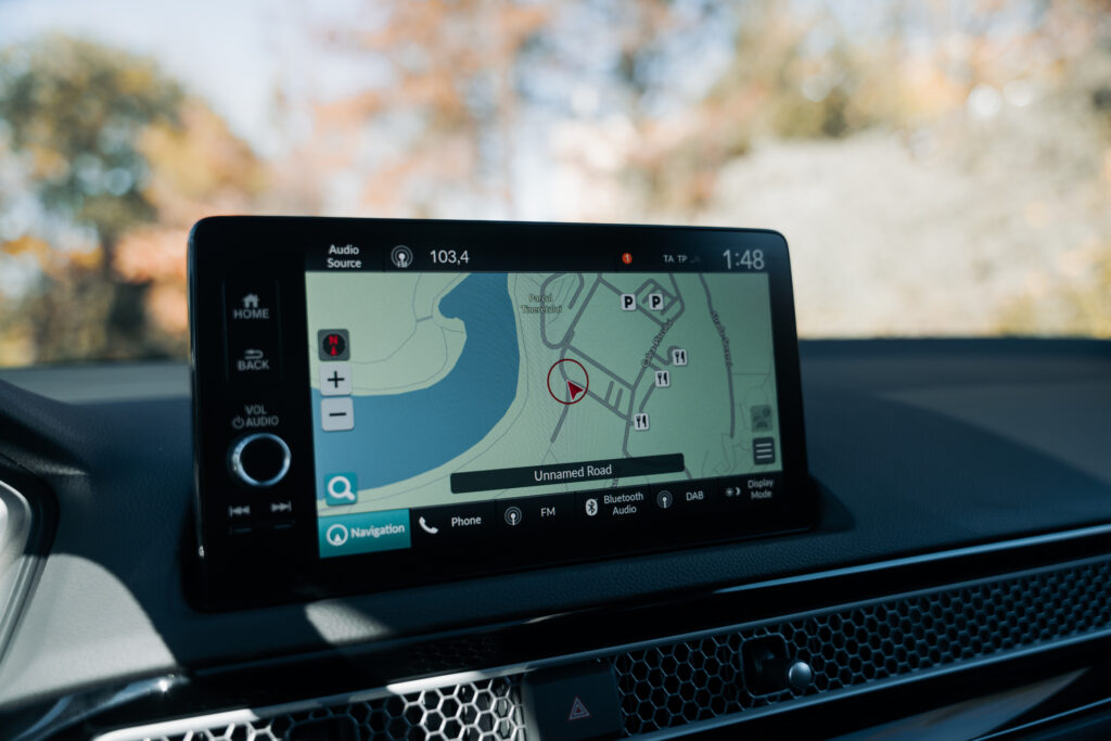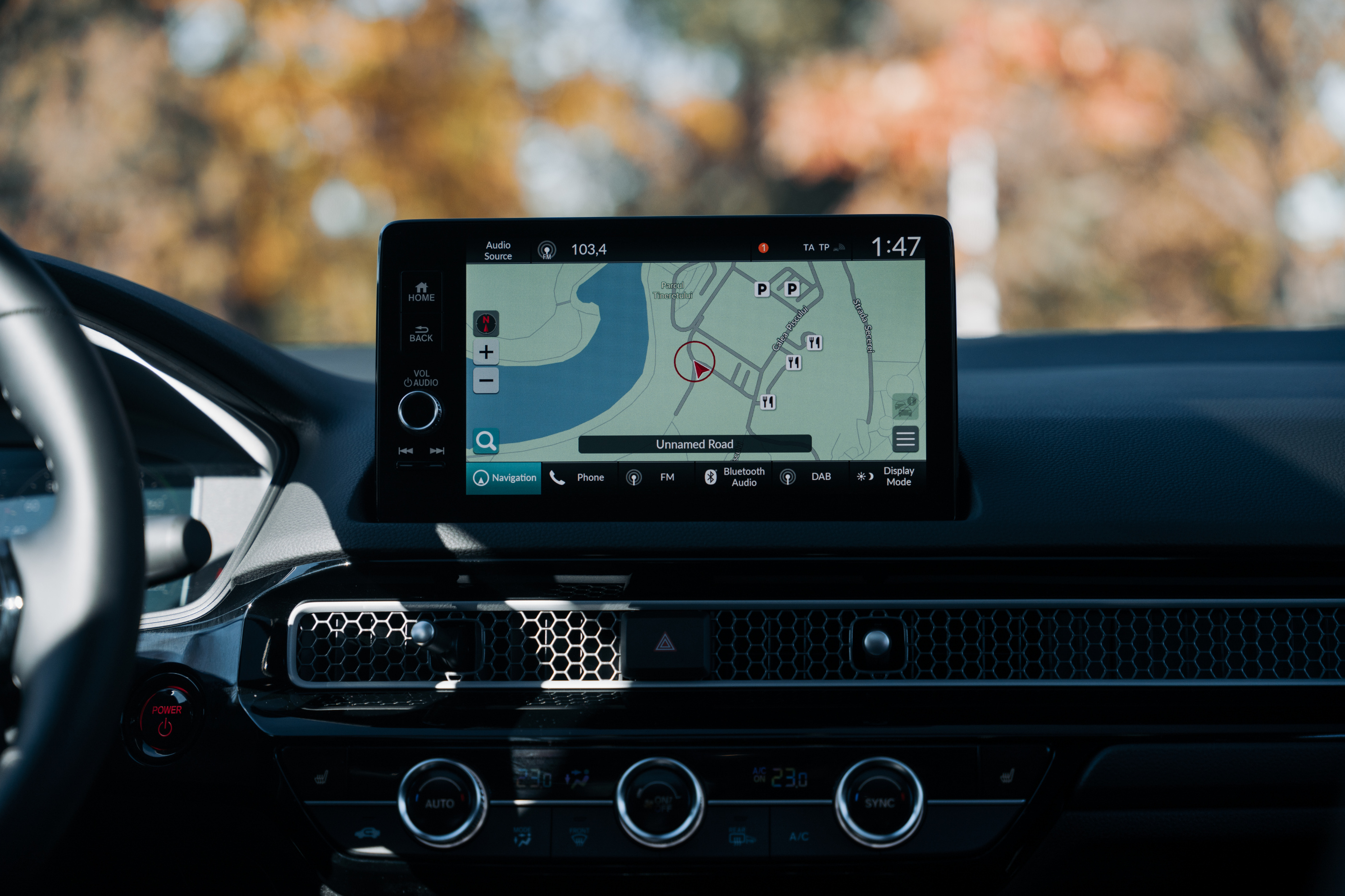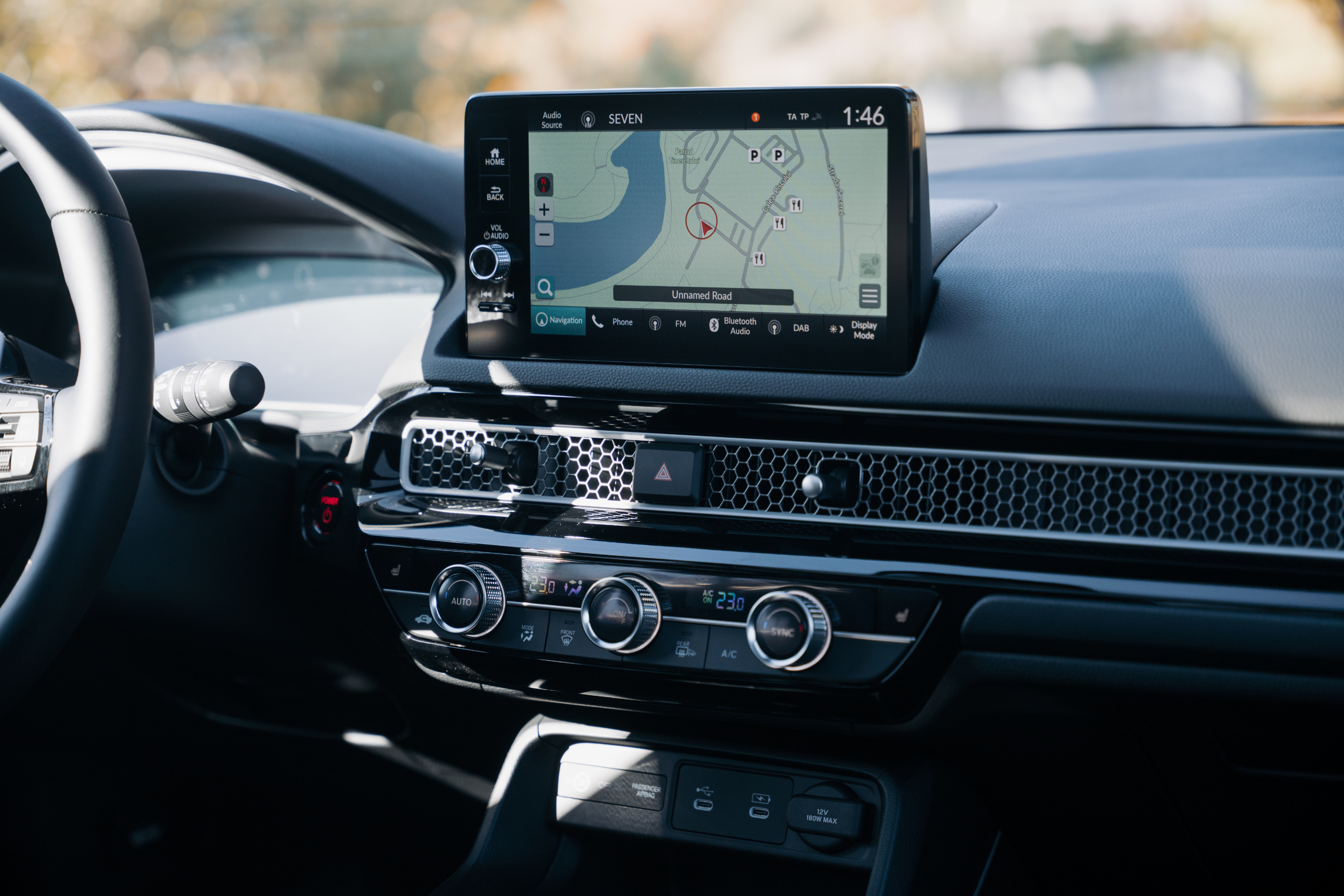 Aici se remarcă iar o cumințenie „Made In Japan”, dacă-i putem spune așa. N-am simțit că i-ar lipsi vreo funcție ori vreo aplicație, informațiile sunt grupate simplu, eficient, lizibil. Totuși, pot înțelege că pentru unii poate că va fi prea simplu, prea banal, prea plictisitor. Fix pentru cei care preferă comenzile tactile ori prin gesturi în detrimentul potențiometrului de volum clasic, pe care, aviz celor care au condus generațiile anterioare Civic, l-am găsit de foarte bun augur. Altfel, ecranul stă unde trebuie, comunică ce trebuie, are și scurtături fizice foarte utile, nu e nevoie de mai mult de atât pentru o compactă.