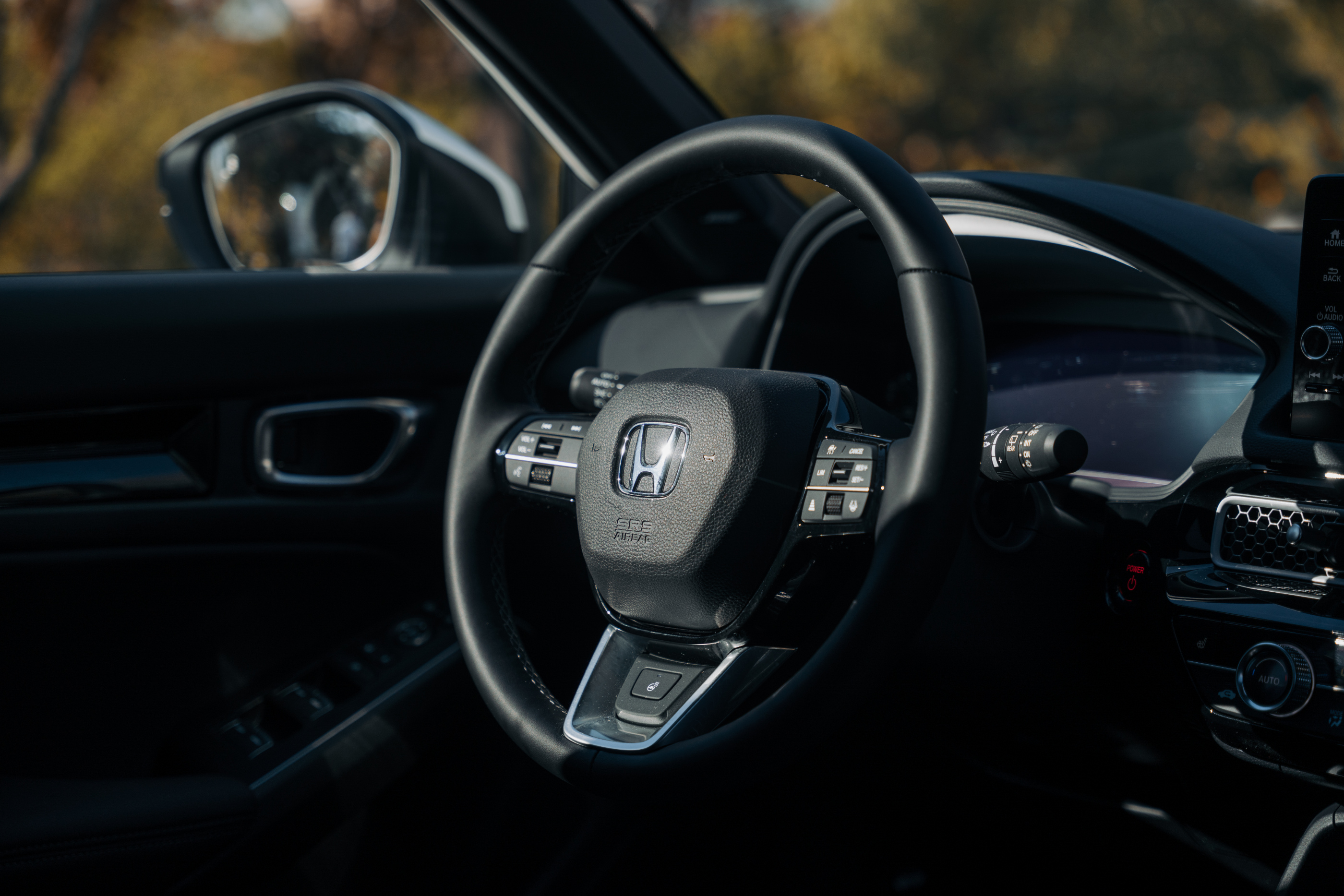 Nu pot recomanda decât unica motorizare care se găsește în oferta Honda, unitatea hibridă care are în centrul său motorul termic de 2 litri, alimentat cu benzină, care funcționează pe post de alimentator de energie, dacă-mi permiteți figura de stil. Puterea maximă a ansamblului este de 184 CP (143 fiind valoarea generată de unitatea termică), iar momentul motor este excelent pentru o compactă, anume 315 Nm. Sistemul full hibrid botezat e:HEV îi permite modelului să ruleze (și) în mod EV, pentru un plus de rafinament și o doză suplimentară de economicitate.
