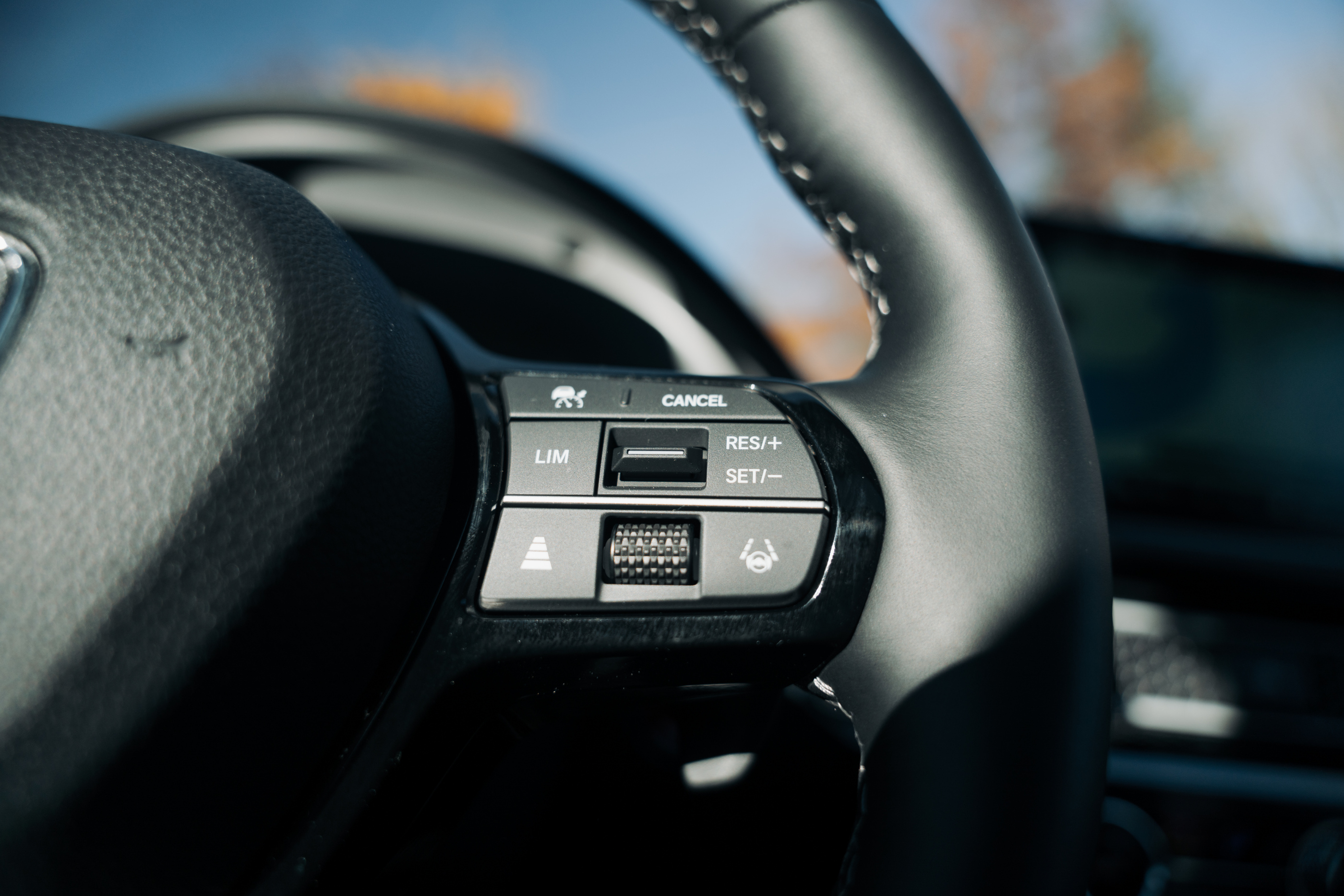 Îmi place reglajul sistemului de direcție, m-a făcut să simt că face cinste H-ului din mijlocul volanului. Precis, comunicativ cu șoferul, asistat într-o proporție corectă, ușor de trăit cu el în oraș, suficient de intrigant la drumuri lungi și poate unduite, reprezintă o medie aritmetică a tuturor nevoilor unui șofer modern. Apoi, în ton ca pregătire pentru mai toate scenariile de exploatare se află reglajul trenului de rulare. În primul rând, sistemul de suspensie lucrează foarte silențios; sau poate că izolarea zgomotelor parazite se face foarte bine. Chiar și pe străzile pe alocuri jalnice din unele zone ale Bucureștiului filtrează cu spor imperfecțiunile, chiar și denivelările scurte și sâcâitoare. Totodată, păstrează un oarecare nerv al modelului la deplasările lungi, amintind că Honda a fost dintotdeauna o marcă aplecată spre sportivitate – mă rog, atât cât poți emite de la un sistem de propulsie hibrid, de 184 CP.