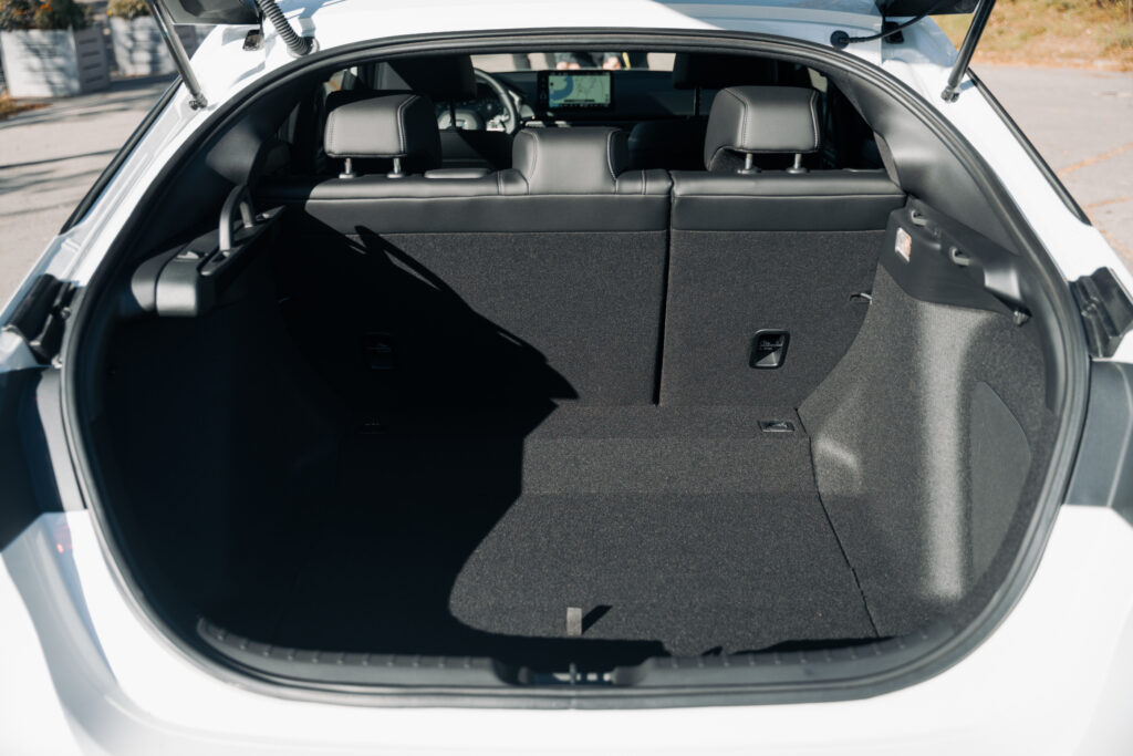Poate că o să râdeți de mine că mă rezum la un detaliu aproape insignifiant, o banalitate, însă îl găsesc definitoriu pentru cât de logic este pragmatismul inginerilor niponi. Portbagajul nu este acoperit de o poliță simplă, ca la multe alte compacte, ci de un rulou retractabil care poate fi manevrat super simplu. Ai nevoie să acoperi compartimentul de bagaje, tragi ruloul pe poziție, ai nevoie să încarci un obiect mai mare, doar îl strângi, fără să fie nevoie să depozitezi o poliță clasică pe undeva. Au încercat și alții cu soluții inteligente, însă niciuna nu mi s-a părut atât de eficientă. Și e banal de simplă.