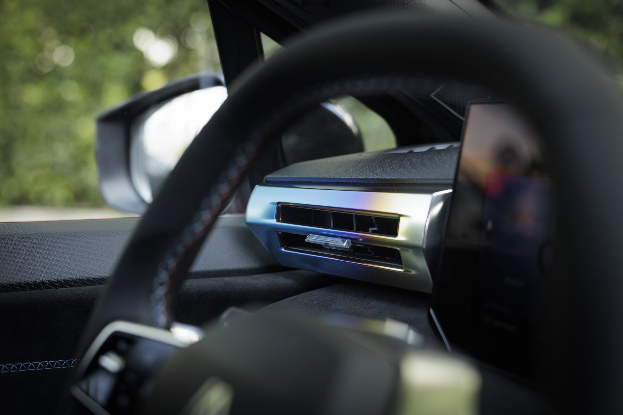Și pentru că se prea poate să fiu uneori reticent la nou, nu m-a cucerit ornamentul de pe planșa de bord finisat în spectral titanium, ceva ce vrea să imite metalul ars al unei evacuări.