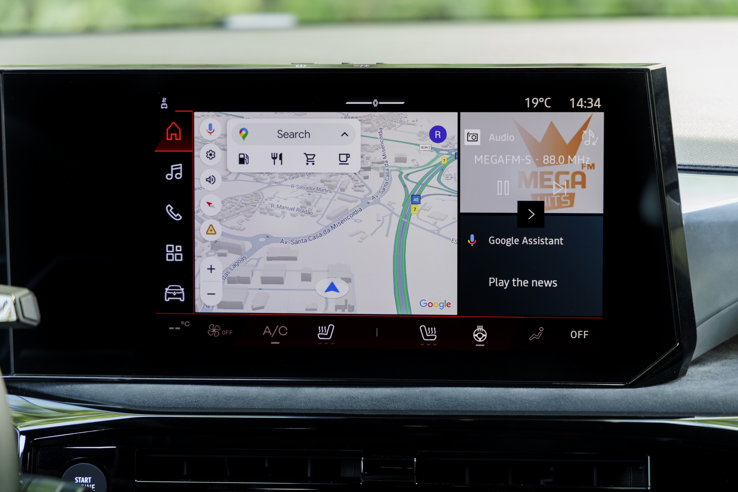 Mi-a plăcut că pot avea harta pe display-ul pe instrumentarul de bord, iar pe cel central pot să las informațiile de la sistemul audio, de exemplu. La minusuri? Cred că nu m-am obișnuit cu poziționarea comenzilor pentru volum, cele accesibile de pasagerul din dreapta, pe partea superioară a ramei display-ului central. Sunt discrete și greu perceptibile de cineva care nu este familiarizat cu mașina.
