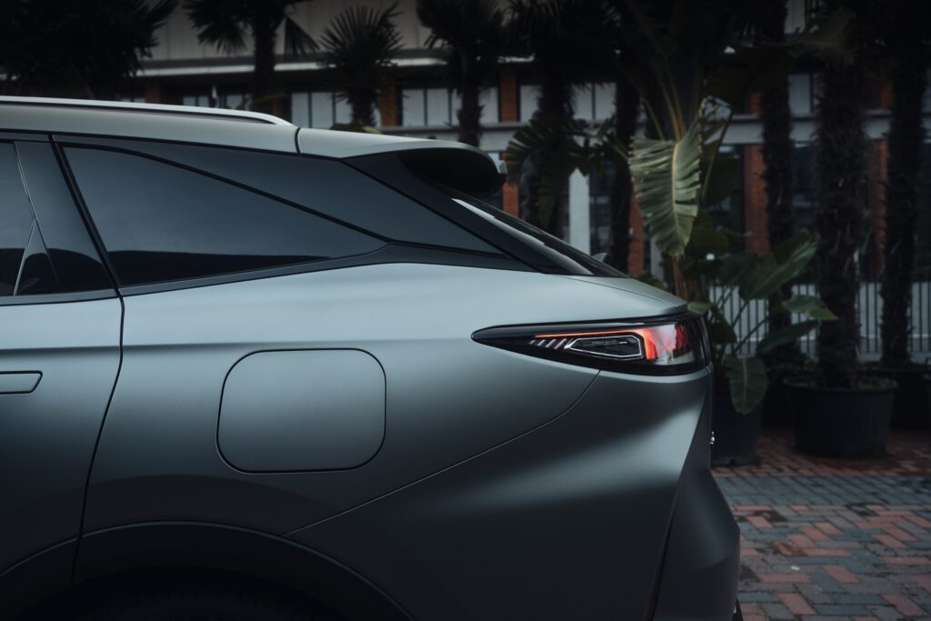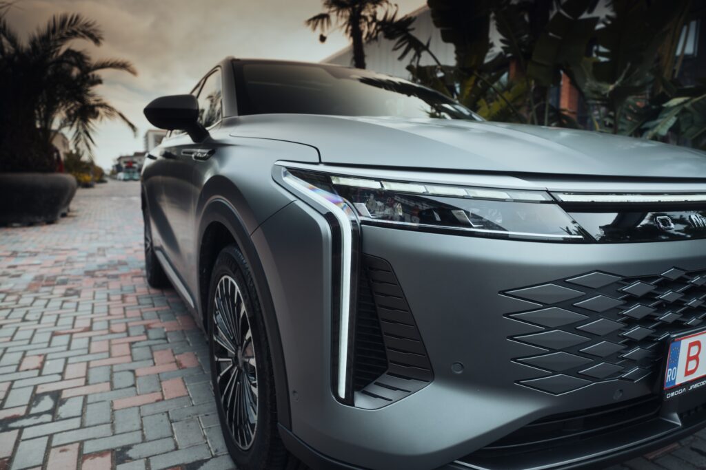 Omoda 9 SHS, un SUV cu parfum de SAC, dacă ar fi să adoptăm acronimul creat de BMW pentru SUV-urile cu parfum de coupé. Un model impozant, masiv, cu o linie mediană înaltă care îți induce senzația de monolit. Și totuși, această geometrie are eleganța ei. Lungimea de 4.775 mm este ușor estompată de cei 1.920 mm lățime, iar înălțimea are doar 1.671 mm, deși lasă impresia că este mai „cocoțată”.