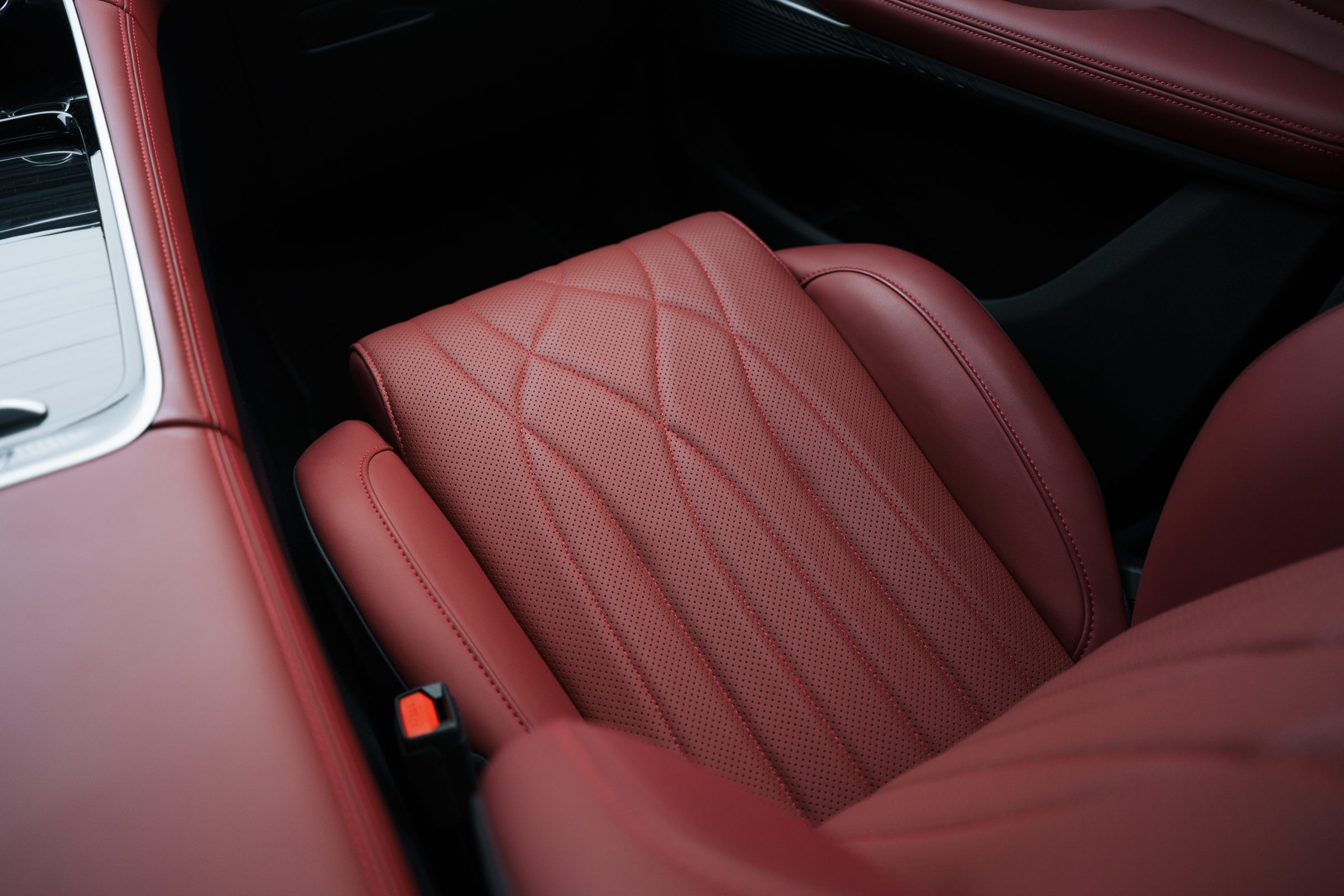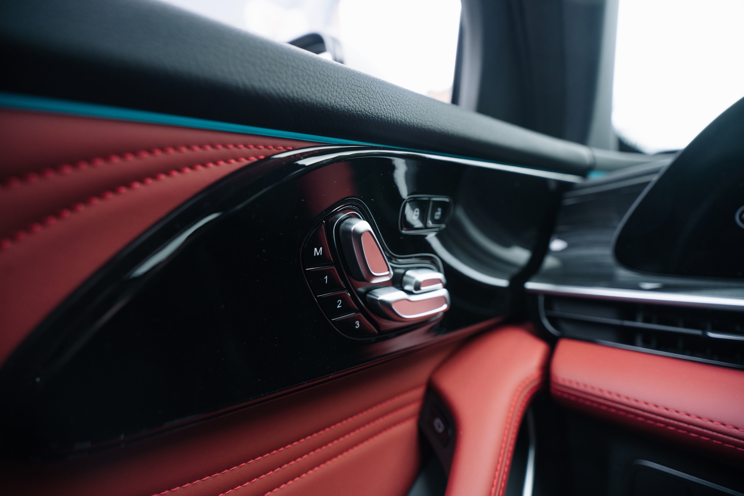 Clasic deja, conectivitatea pentru Apple CarPlay sau Android Auto se realizează via USB A sau wireless. Pe de altă parte, minimalismul și eleganța locurilor față este în concordanță cu mesajul premium al modelului. Mai pot adăuga spațiul refrigerat din spațiul de depozitare din cotiera centrală. Apropo de răcire, salut faptul că zona de încărcare wireless a telefonului (livrează până la 50W) este prevăzută cu fante pentru răcirea terminalului.