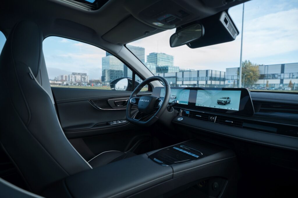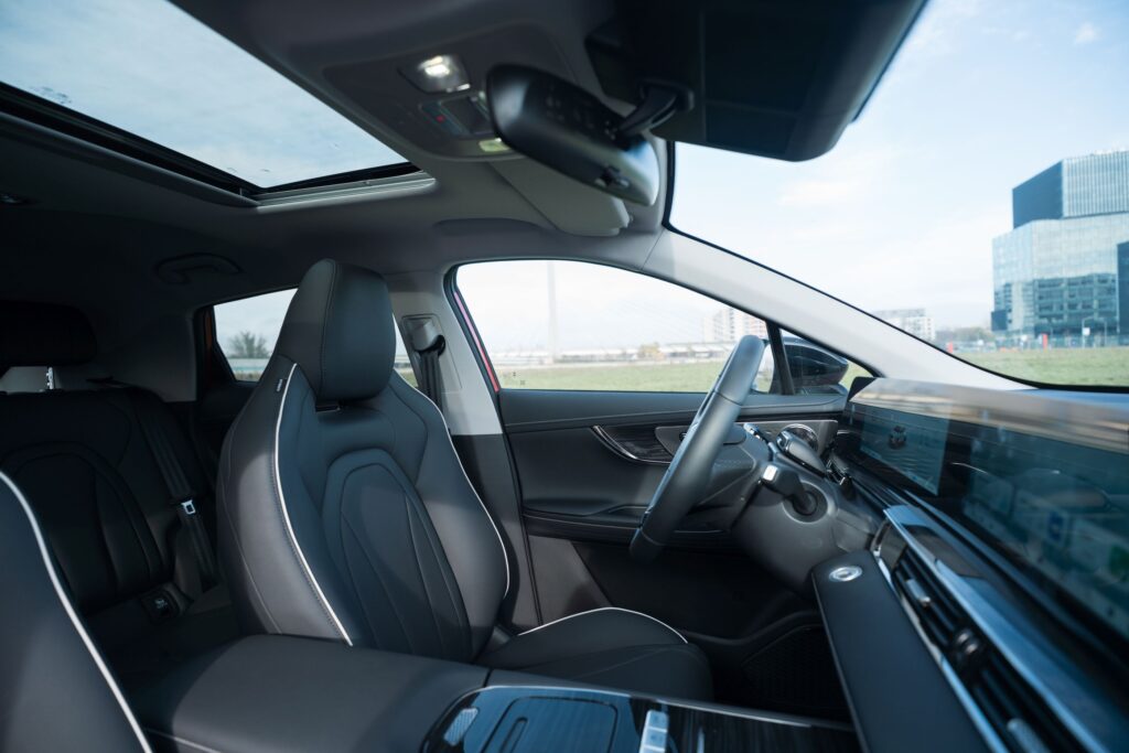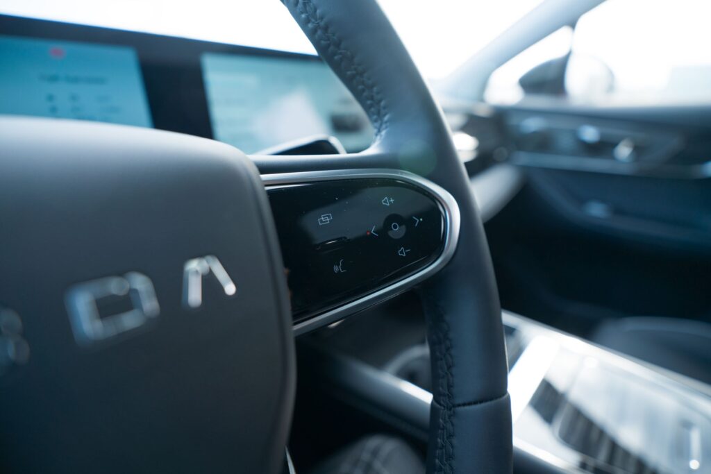La nivel stilistic, interiorul aduce aminte de mai multe modele ale mai multor producători. Avem interfața unității multimedia care amintește de Tesla, difuzoarele din fețele de uși care amintesc de Mercedes-Benz, la fel și mutarea selectorului transmisiei pe coloana de direcție și la fel și comanda ștergătoarelor pe maneta de semnalizare. Deși butoanele de pe fețele de uși amintesc tot de Mercedes-Benz, pictogramele de pe acestea m-au dus cu gândul la Hyundai și la Kia.