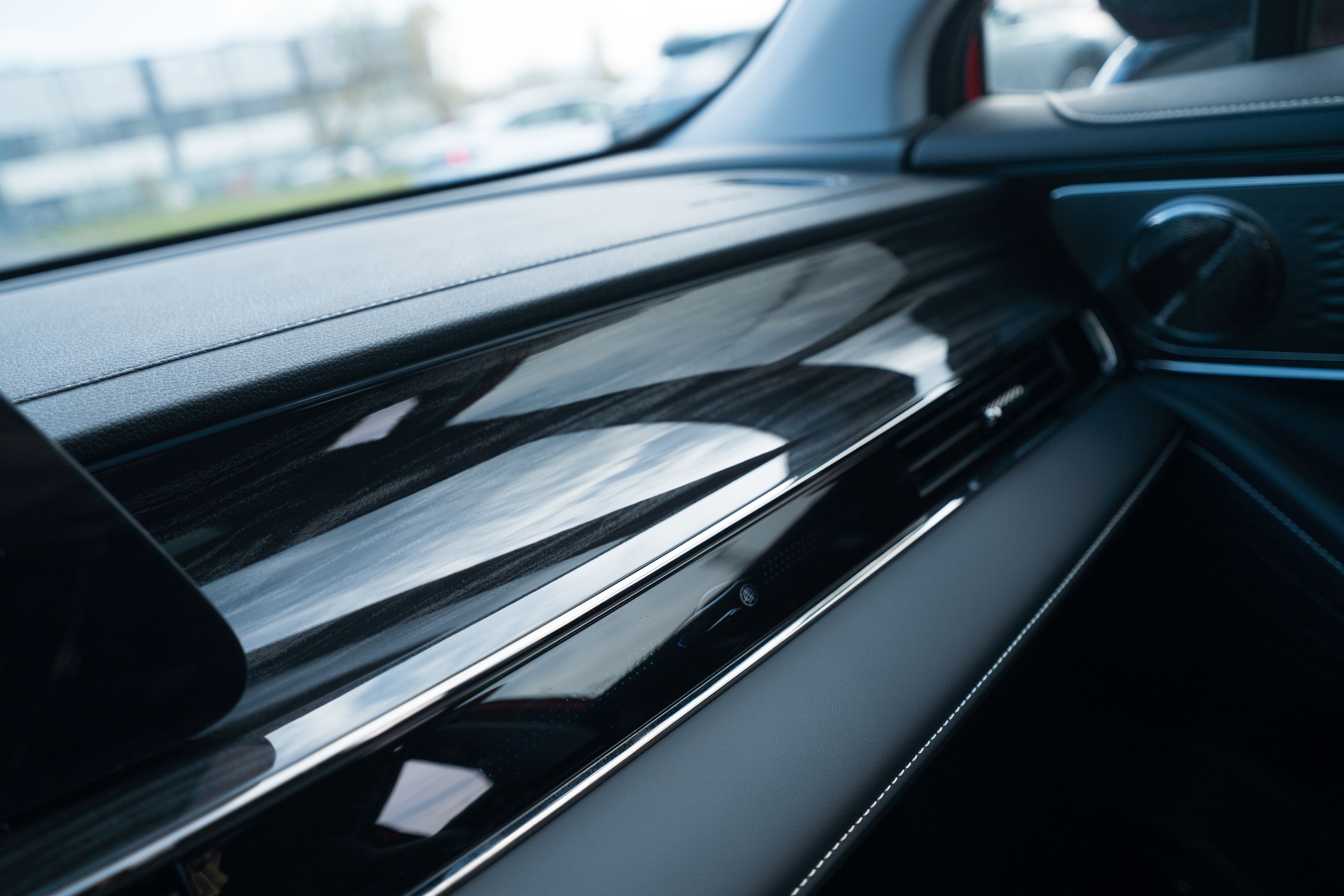 La prima strigare, nu am găsit nicio zonă să arate rău, să fie exagerat de tare sau să se simtă ieftin. Materialul care îmbracă partea mediană a bordului nu este piele adevărată, cum nici ornamentele care imită lemnul nu sunt din lemn, asta e clar, da? Cele din urmă sunt o soluție creativă la eternul piano black de care am început să ne săturăm destul de mulți.