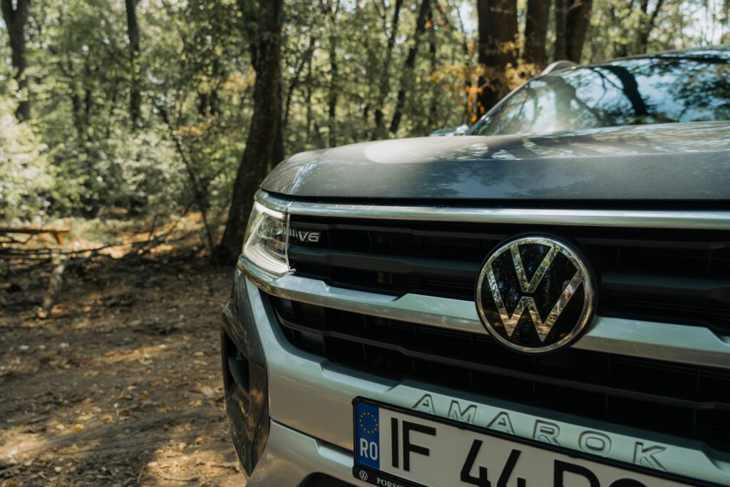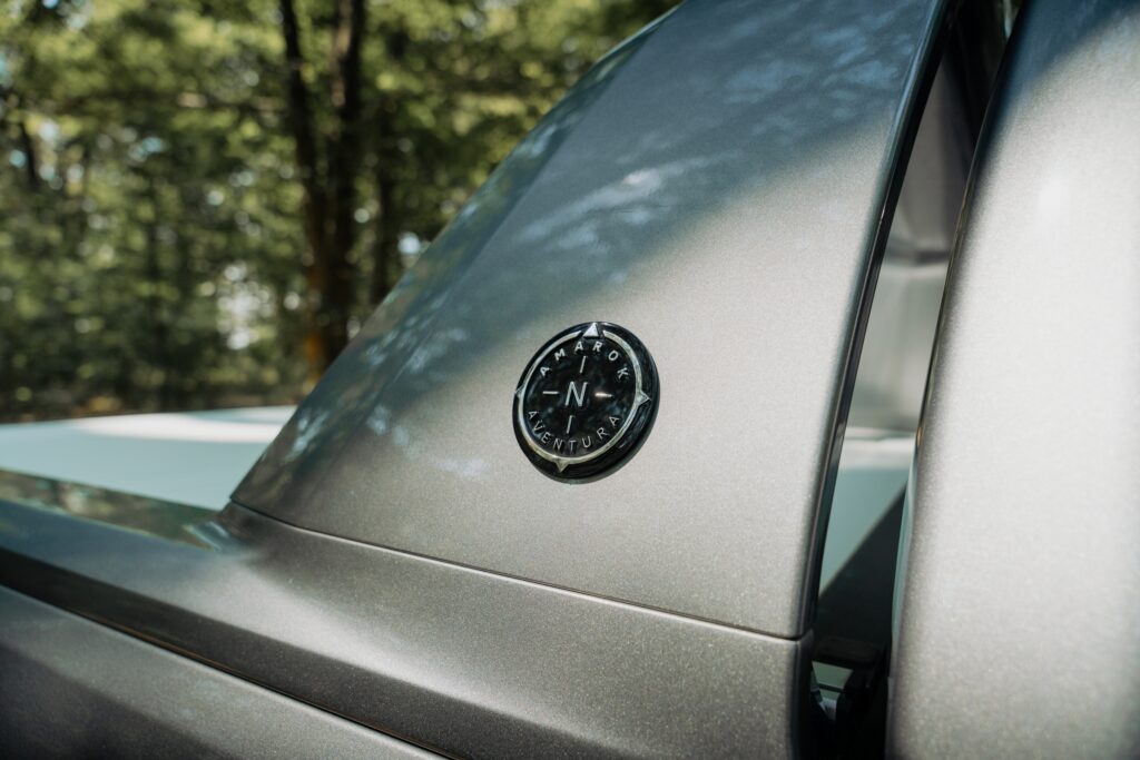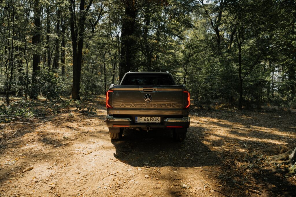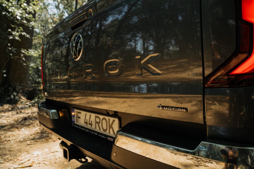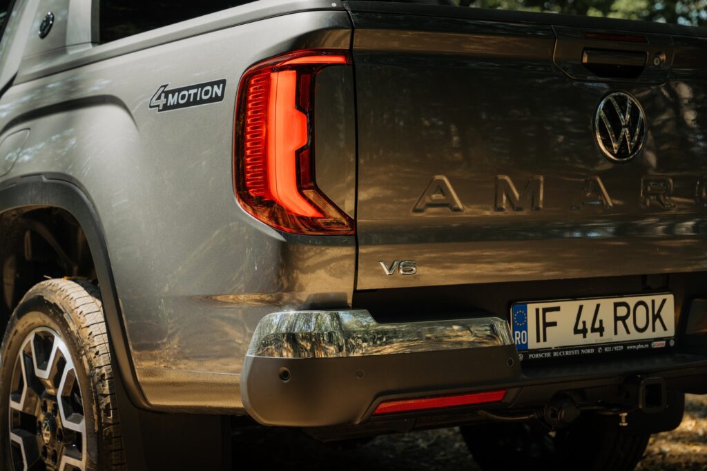 Ținând cont de ADN, pot spune că designerii au făcut o treabă excelentă în a păstra identitatea modelului. Pe de altă parte, apartenența la familia Volkswagen nu poate fi negată. Spoilerul lunetei spate montat pe benă echilibrează vizual partea frontală cu spatele mașinii. Apreciez calitatea finisării, dar parcă mi-aș dori mai puțin sclipici la exterior. Amarok este un pick-up solid și capabil, dar îmbrăcat astfel îți este ușor teamă să nu-i provoci „răni” dacă treci pe lângă o buruiană.