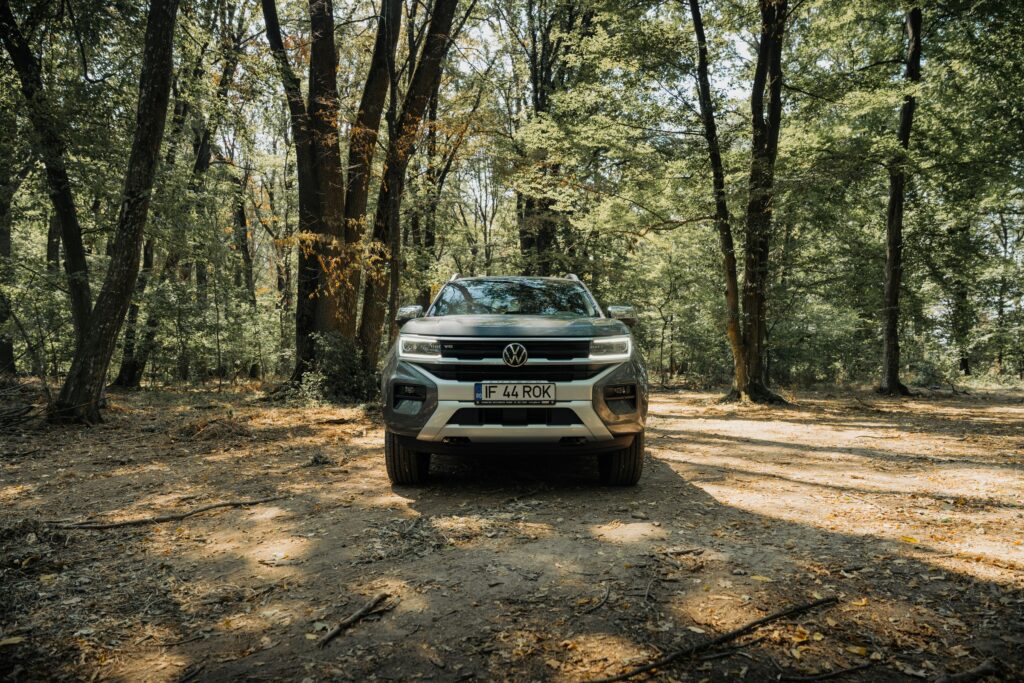 Nu uita că 4Motion este o tracțiune integrală nepermanentă. Vei rula preponderent în 2H, doar cu puntea spate motoare. Iar la schimbări bruște de aderență, fie că întâlnești praf/pământ pe carosabil sau apă, poți descoperi caracterul subvirator al mașinii, și vorbim de 2,5 tone care pot crește ritmul cardiac când descoperi că nu te ascultă. Lucru valabil și cu bruscarea accelerației în aceste situații: când îți ajung 600 Nm la puntea spate, acompaniați și de o benă goală, spatele mașinii va fi ca o odraslă căreia încerci să-i ghicești mișcările când ajunge la locul de joacă.