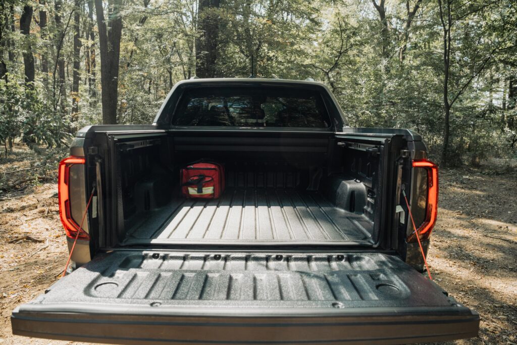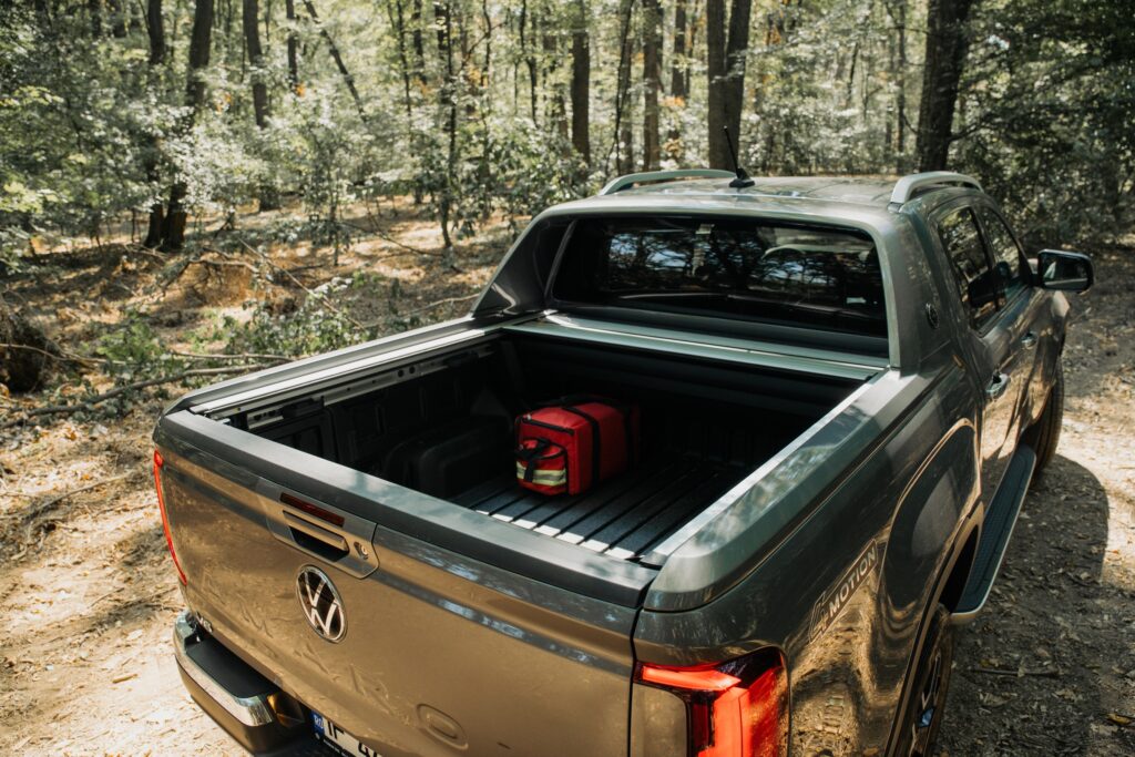Dar legat de spațiu, pentru a recupera puțin, pășim în benă unde găsim loc din belșug. În versiunea duble cab, bena mașinii are o lungime de 1.624 mm și o lățime între pasajele roților de 1.206 mm, ceea ce permite încărcarea unui euro palet. Iar sarcina utilă este de 902 kg pentru această versiune. Oblonul spate este asociat închiderii centralizate, iar ruloul acționat electric păstrează intimitatea „mărfii” din benă. Iar pentru amatorii de ieșit în natură, tot în benă mai găsești și două prize care îți permit alimentarea diferitelor accesorii.