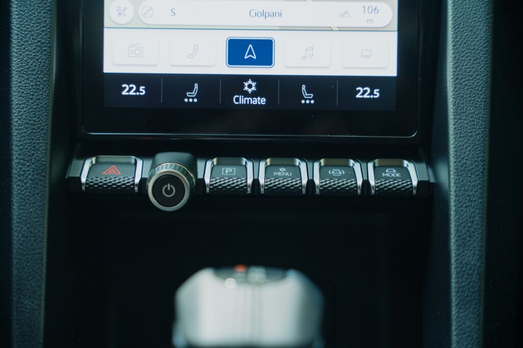 S-a păstrat acel parfum utilitar prin conservarea unor comenzi/butoane generos dimensionate. Să ai acel parfum de obiect robust și masiv și la interior. Aici mă refer la claviatura de la baza display-ului de 12 inch a sistemului infotainment. Prefer display-urile dispuse portret pentru că îmi oferă o perspectivă mai generoasă asupra drumului pe harta aplicației de navigație. De asemenea, la baza display-ului sunt scurtături spre reglajele sistemului de climatizare, cât și spre meniul sistemului infotainment.