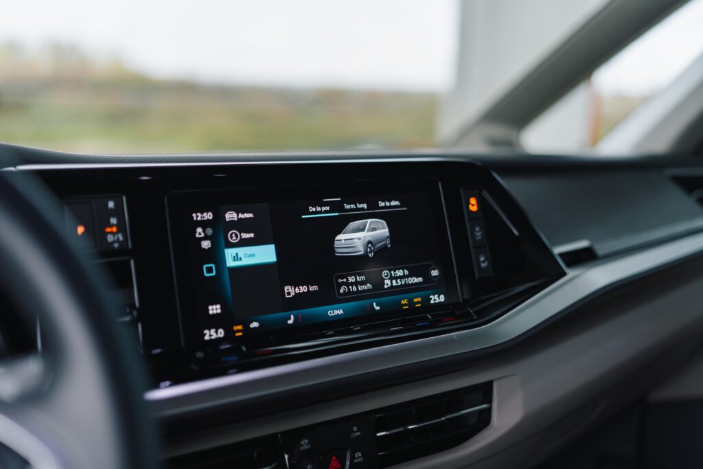 Nimic special aici, un sistem deja clasic pentru modelele Volkswagen. Socializezi cu sistemul infotainment via un display central de 10 inch. Personal am găsit displayul amplasat o idee cam departe de șofer, trebuia să mă duc după el dacă voiam să accesez ceva. Cred că este modelul cu cel mai slab raport diagonale displayuri vs. spațiu interior. Asta am menționat-o în spirit de glumă.