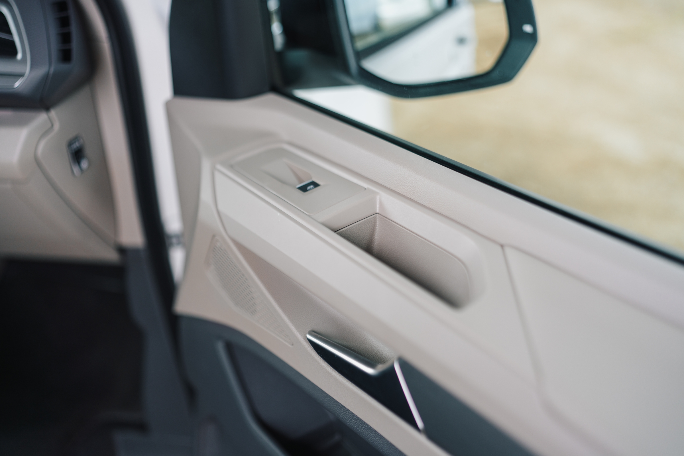 Portierele față au două buzunare, cel inferior este generos, dar greu accesibil în timp ce conduci, însă compensează cel median unde poți depozita diverse utile la drum lung. În planșa de bord, în zona inferioară, se află un suport de pahare rabatabil care include și un spațiu de depozitat telefonul. Am descoperit că am avut tendința de a depozita băuturile pe consola centrală culisată, pentru că am putut regla poziția ei, spațiul din bord găsindu-l ușor incomod pentru că implică modificarea poziției la volan pentru a ajunge la ce este depozitat acolo.