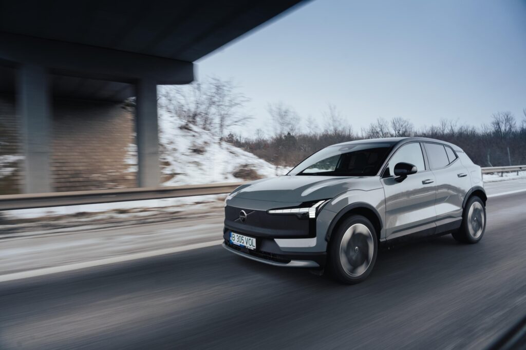 Da, resursele lui EX30 Cross Country sunt mai mult decât suficiente pentru cam orice îți vine acum în minte. Reprizele pe autostradă sunt satisfăcătoare, iar reacțiile sunt prompte, indiferent de modul de rulare (Range, Standard, Performance) pe care îl utilizezi.