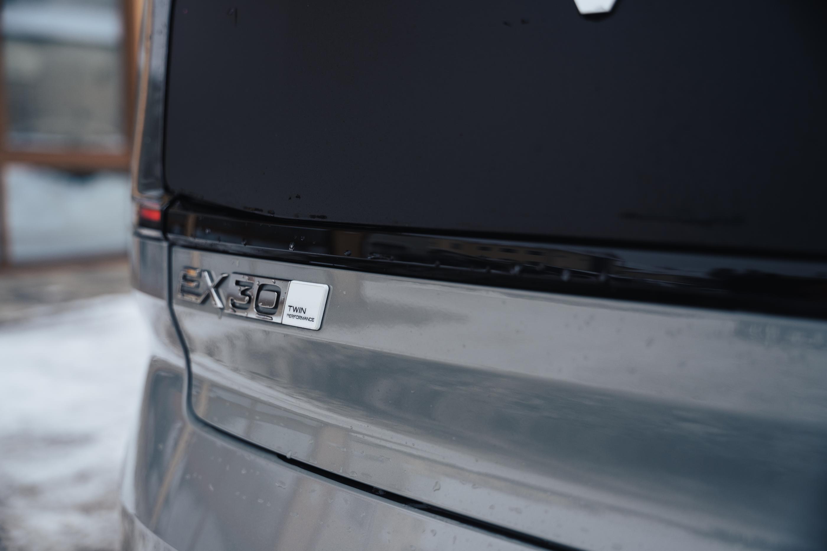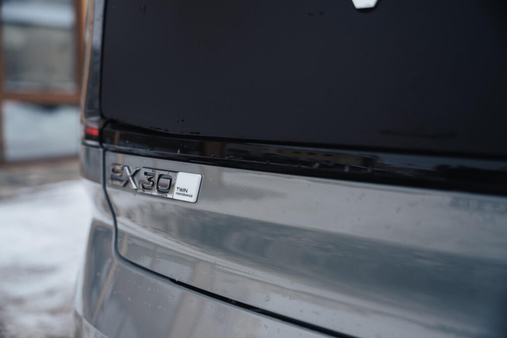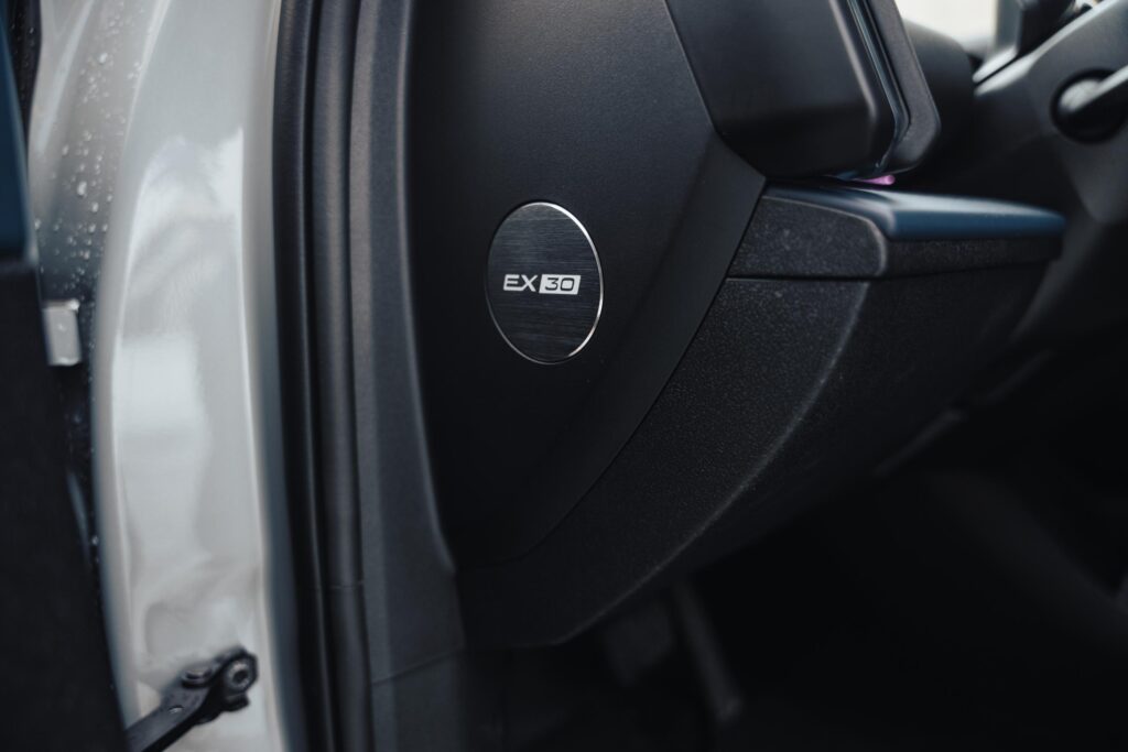 Jantele standard au 19 inchi, iar pe anumite piețe sunt disponibile unele de 18 inchi cu anvelope un pic mai potrivite pentru ieșirile de pe asfalt. Pentru ca identitatea vizuală să fie completă, un bandou negru a fost montat în spate, între cele două stopuri (pe EX30 vine în culoarea caroseriei).