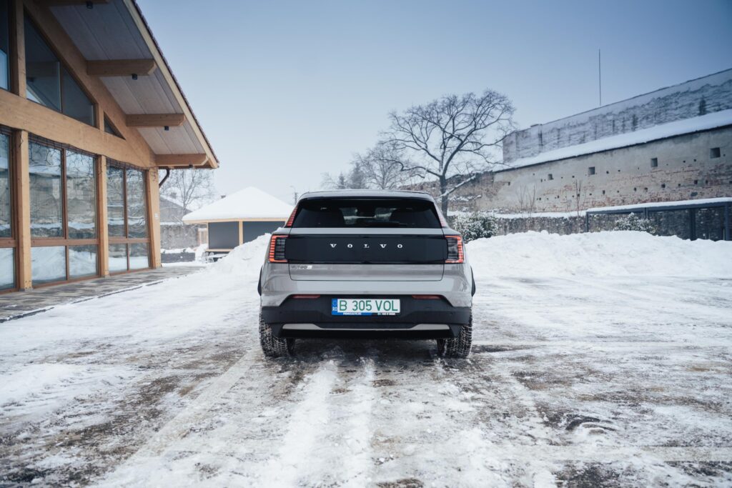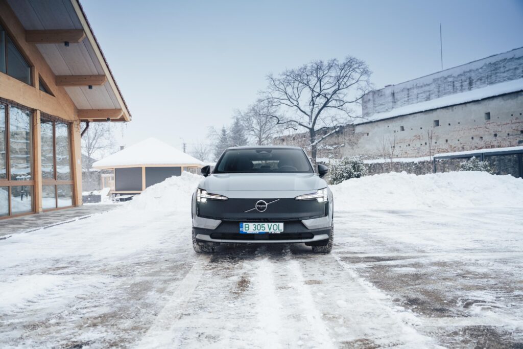 Aș adăuga și faptul că EX30 Cross Country vine cu o funcție one-pedal pe care, evident, o activezi din meniul ecranului central, și care ar putea fi reglată ceva mai bine. În sensul în care mașina decelerează, dar nu pe atât de repede pe cât te-ai aștepta. Sigur, te obișnuiești cu ea și cu modul de lucru, însă mie mi-ar fi plăcut o reacție ceva mai „brutală”.