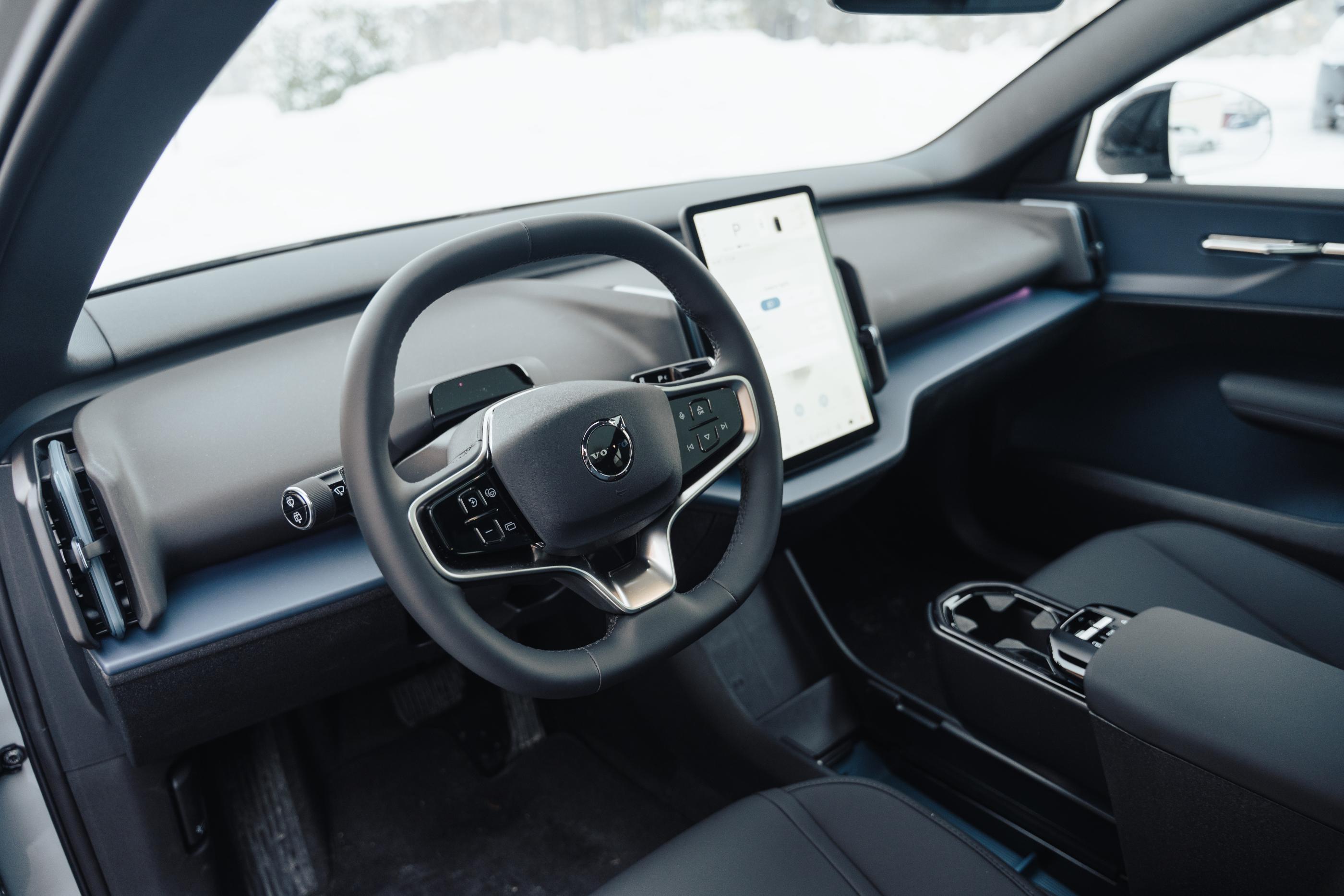 Am avut doar întâlniri sporadice cu EX30, fără să ne cunoaștem prea bine, deci aveam o idee despre ce găsesc la interior. Pe scurt, minimalism scandinav dus într-o direcție care i-ar putea speria puțin pe cei care erau obișnuiți până acum cu atmosfera dintr-un XC60, de exemplu.