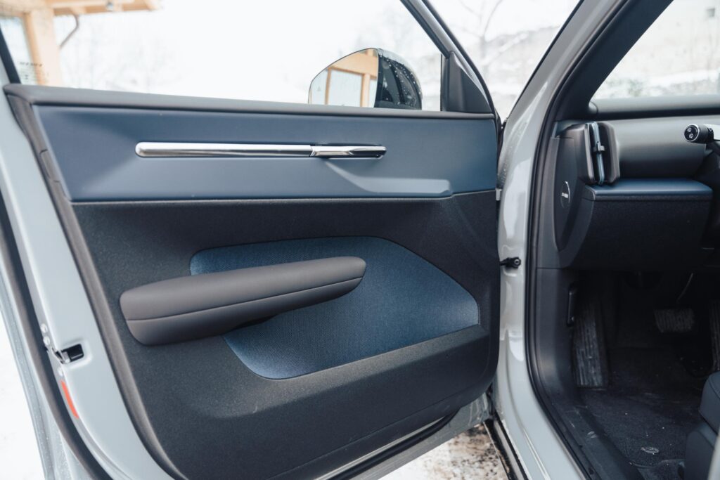 Cum am spus, pe EX30 CC l-am plimbat peste 700 de kilometri pe DN-uri și autostrăzi, așa că pot să vorbesc din acest punct de vedere. E confortabil, un pic mai confortabil decât EX30-ul simplu, iar comportamentul rutier, deși rămâne unul cu o doză bună de dinamism, e ceva mai înmuiat. Și mi se pare normal, din moment ce garda la sol a crescut, iar suspensia a primit o setare menită să înghită mai cu ușurință traversarea drumurilor neasfaltate.