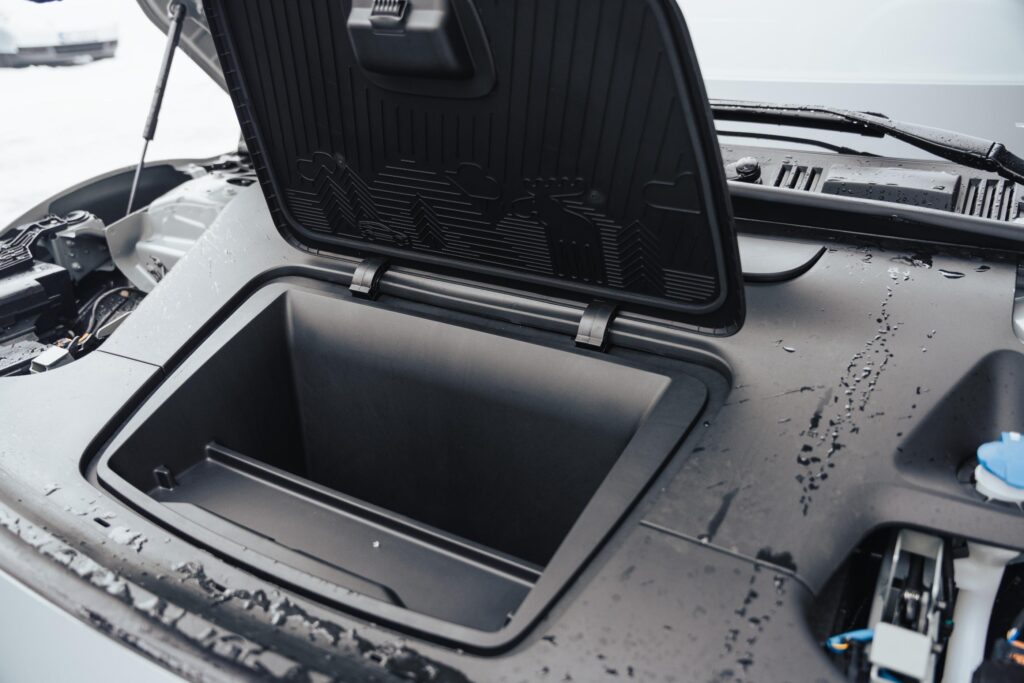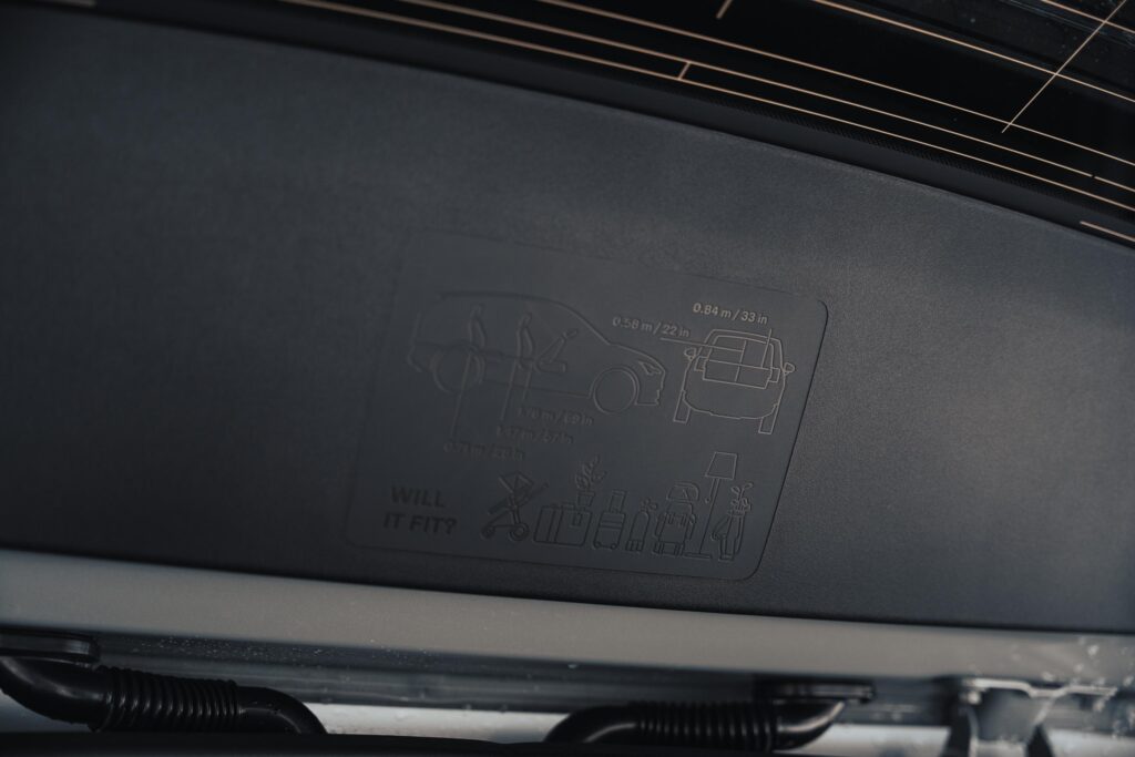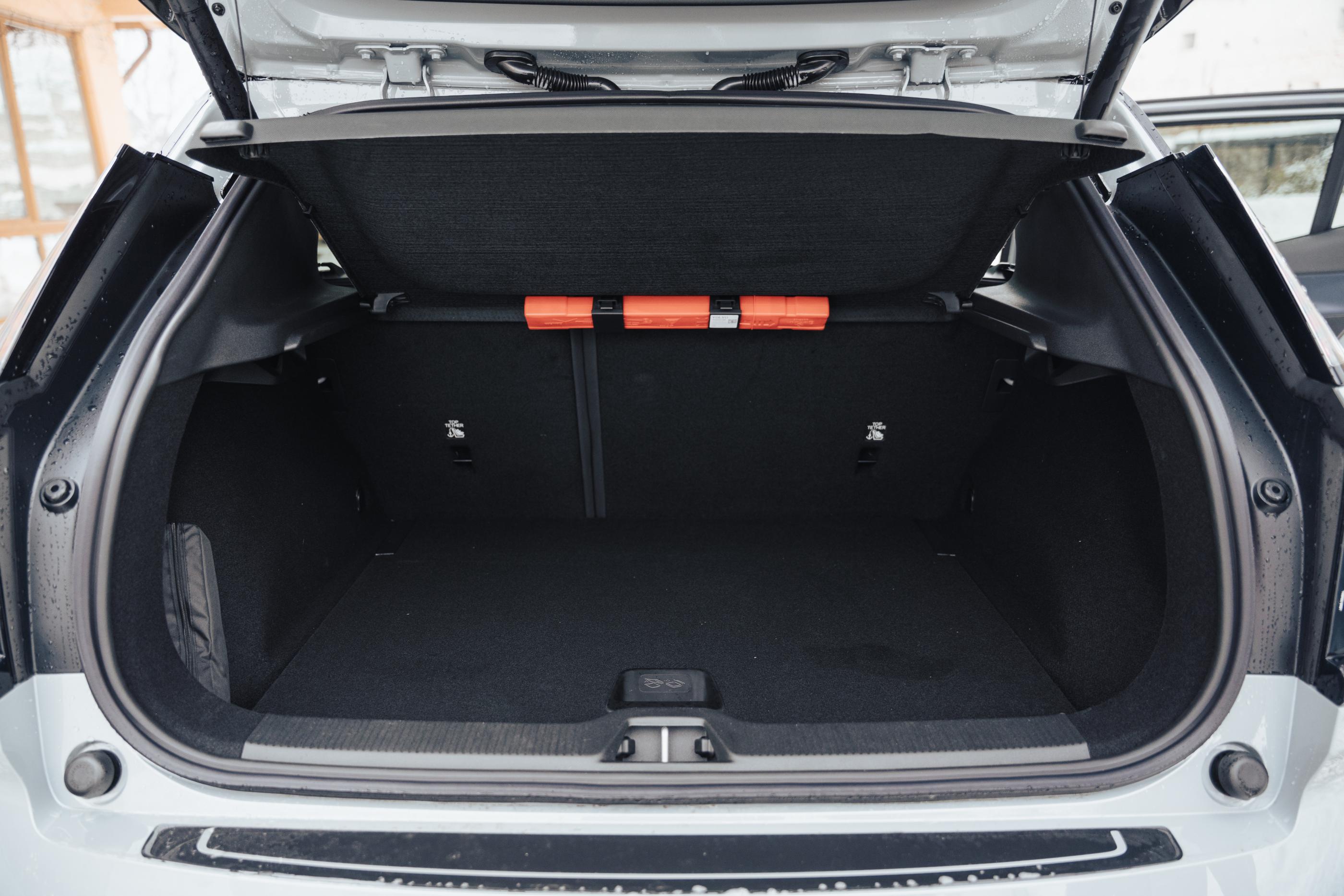 Volumul portbagajului este de 318 litri, valoare nu neapărat excepțională nici pentru segmentul din care face parte EX30 Cross Country. Partea bună ar fi că sub capotă există un frunk de aproape 20 de litri numai bun pentru un cablu de încărcare.
