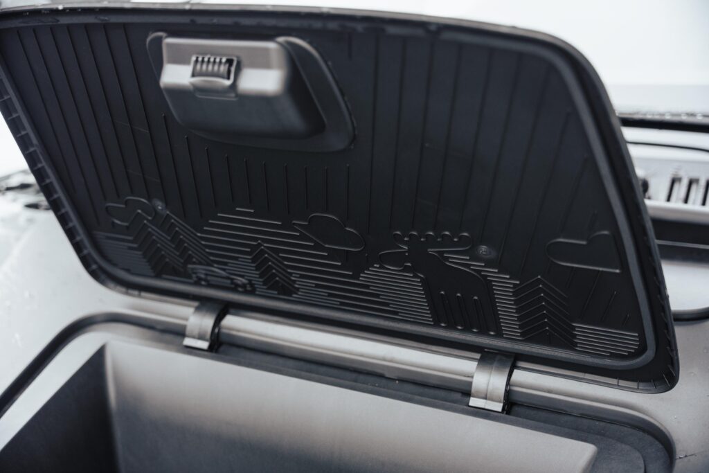 La nivel estetic, noua variantă are un element de protecție diferit pentru zona frontală, unul cu însemne topografice – există chiar și coordonatele GPS pentru vârful Kebnekaise din Suedia. Poate părea doar un party trick vizual, dar ideea e alta: dacă cumva reușești să aduni zgârieturi în ieșirile tale pe drumuri forestiere, nu mai e nevoie să înlocuiești toată bara, ci doar protecția respectivă (se presupune că n-ai mai zgâriat și altceva, evident). Apoi, pe dedesubt apar scuturi suplimentare, iar pe porțiunile laterale au fost introduse alte elemente din plastic, tot cu rol de protecție împotriva zgârieturilor.