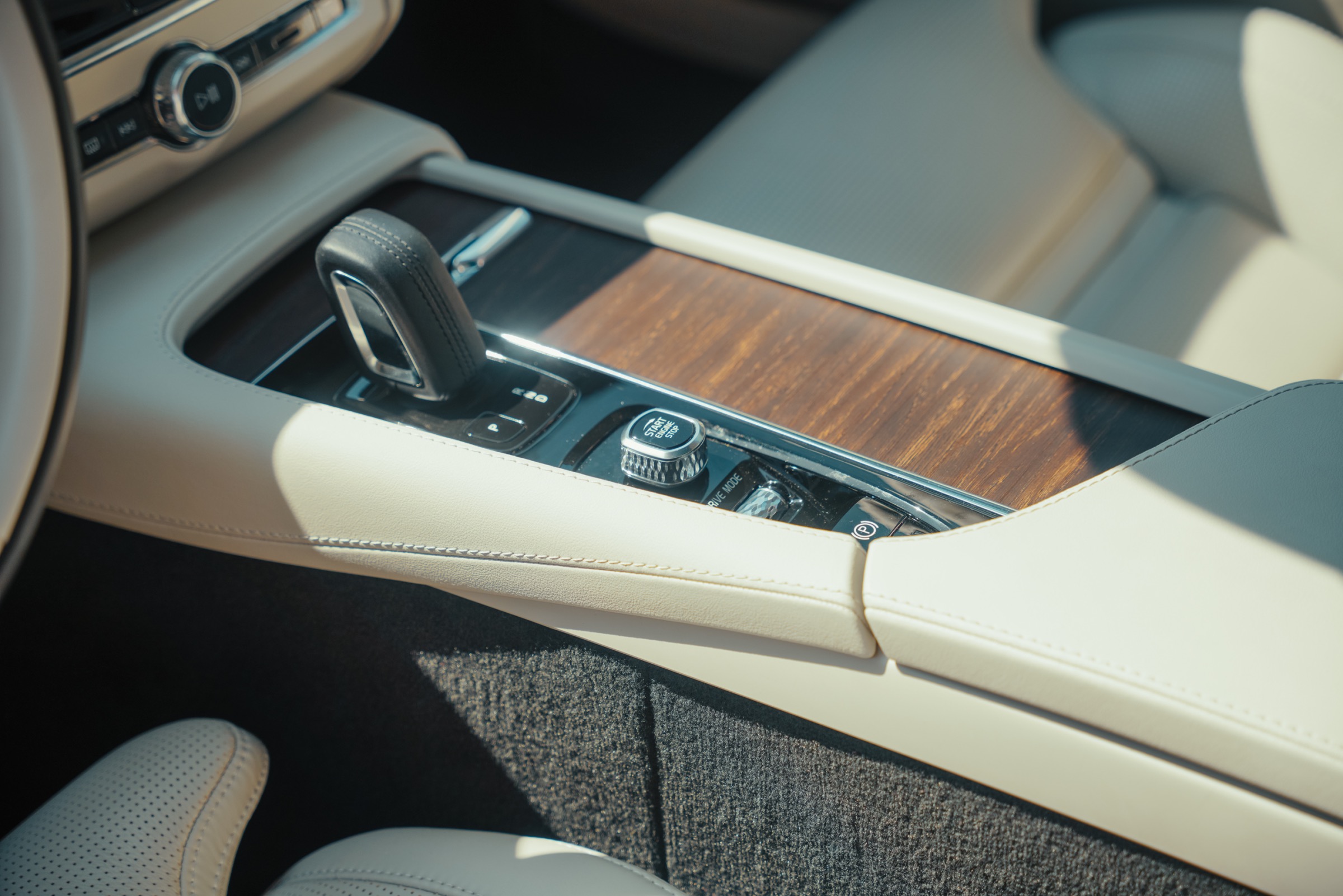 Prin ce se remarcă un Cross Country față de un break normal? Păi, în primul rând, prin garda la sol mărită cu 60 mm față de un V90 normal. Apoi avem un șasiu optimizat pentru confort în orice condiții meteorologice și indiferent de suprafața de rulare. Avem, bineînțeles, tracțiune integrală permanentă și transmisie automată cu 8 trepte. După facelift, Volvo a renunțat la selectorul masiv al cutiei de viteze în favoarea unui selector electronic de dimensiuni reduse. Acesta are nevoie de un impuls suplimentar de a trece din N în D sau din N în R, dar cu un pic de obișnuință, treci peste acest aspect. Oferă și posibilitatea de a schimba manual treptele, având o poziție M, iar selectarea manuală a rapoartelor se face prin impulsuri laterale. Pe modelul de test nu am avut padele pe volan.