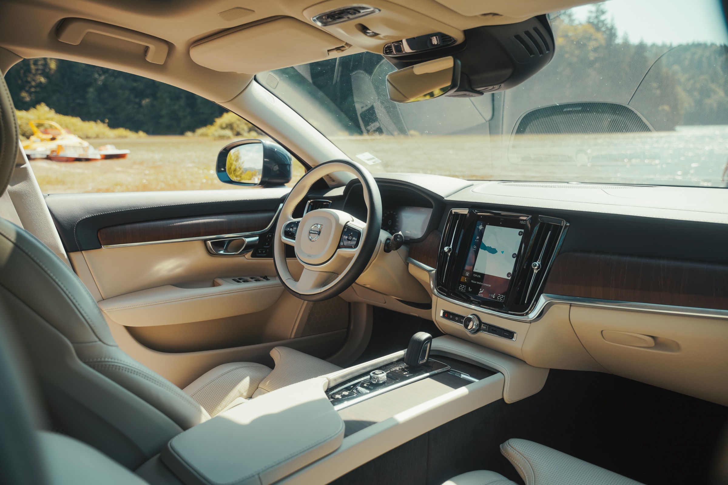 Apoi, avem interiorul. Scandinavian style at its best. Inserții ce imită lemnul perfect, minimalist, comenzi ergonomice și un display vertical. Nu ne place că nu putem afișa Waze-ul pe tot ecranul vertical, dar ne-am obișnuit cu asta, iar lucrurile vor fi îmbunătățite în viitorul apropiat de lansarea generală a sistemului de operare Android Automotive pe acest model. Avem starterul specific Volvo, cu buton rotativ ampalsat pe consola centrală și selector tot rotativ pentru modurile de condus. Ne-am fi dorit o direcție ceva mai fermă, dar selectarea modului Dynamic rezolvă această problemă. V90 Cross Country se dovedește a fi chiar sportiv atunci când îi cerem acest lucru, suspensia menținând caroseria dreaptă și minimizând ruliul pe virajele drumului dintre Reghin și Bistrița.